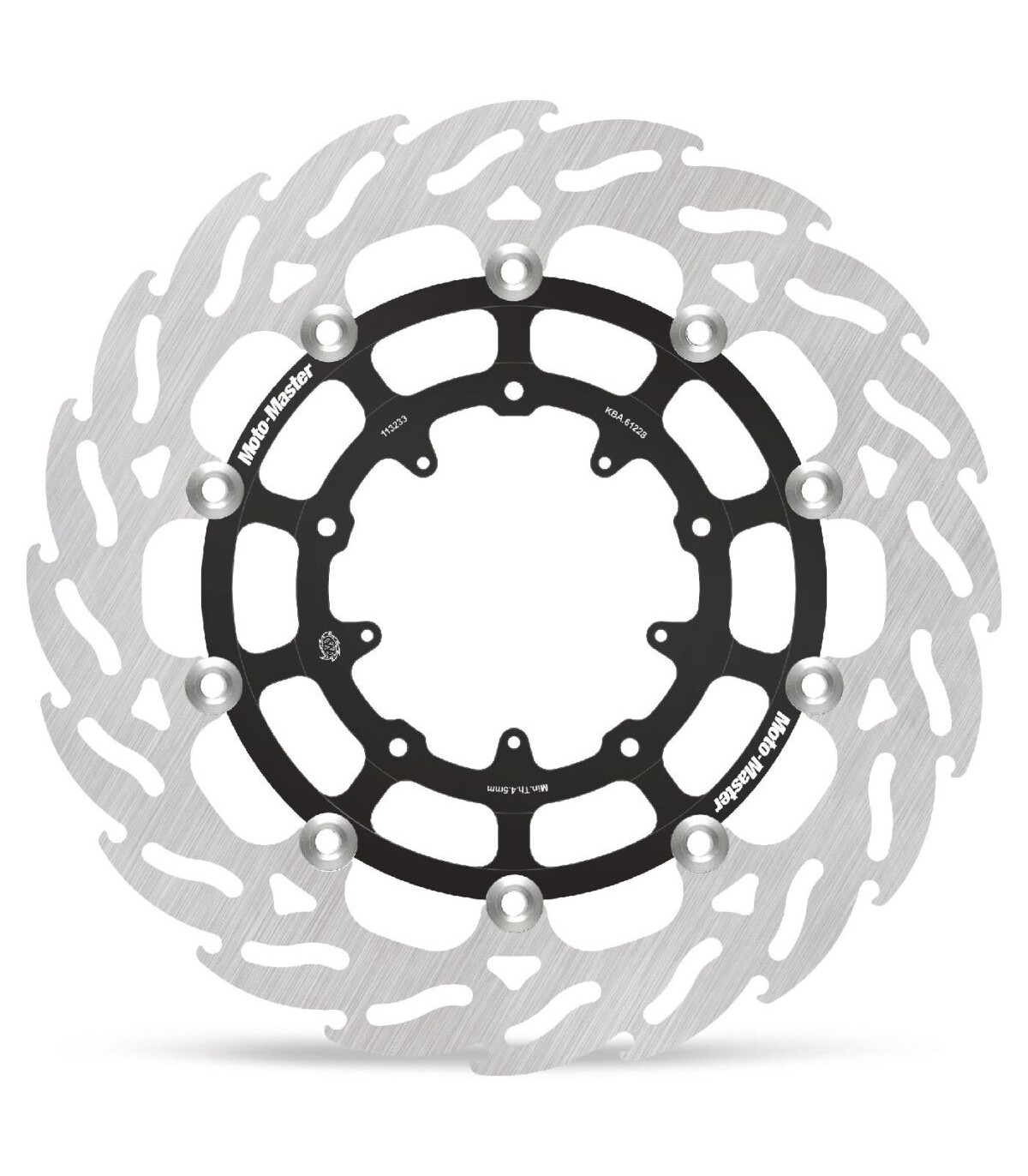 Flame Series Floating RotorThe unique Flame design offers optimal cooling and unsurpassed smooth and predictable braking action which allows you to brake harder.Flame Road Discs are also available in a Racing version for professional racing and track day use.For best performance we recommend using Moto-Master brake pads.Brake Rotor Floating Flame Alu Black