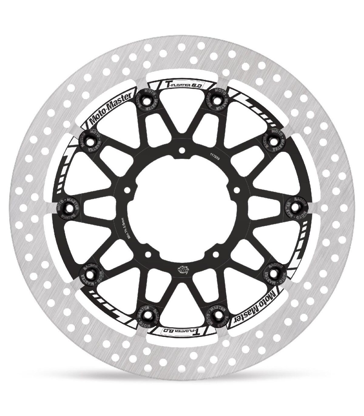 Disque de frein T-Floater série HALOLa conception de l'anneau extérieur HALO assure une dissipation régulière de la chaleur dans des conditions de stress thermique, tout en préservant la propreté de la surface de contact de la plaquette de frein.L'épaisseur de l'anneau extérieur est de 6,0 mm (320 mm) et comporte un trou de refroidissement supplémentaire sur le périmètre extérieur.La partie extérieure découpée au laser et meulée avec précision est fixée à un support en aluminium taillé dans la masse usiné CNC de qualité aéronautique qui est anodisé noir et marqué au laser.Le système T-Floater offre un comportement de flottement contrôlé précis même dans les conditions extrêmes de courseLe design sophistiqué T-Floater permet de résister à de grandes charges mécaniques et de réduire l'usure à un minimumLe système T-Floater est léger grâce à des flotteurs en aluminium anodisé dur spécialement conçus.Brake Rotor Halo T-Floater, Outside Diameter 330mm, Inner Diameter 94mm, Thickness 6,0mm, Pitch 110mm