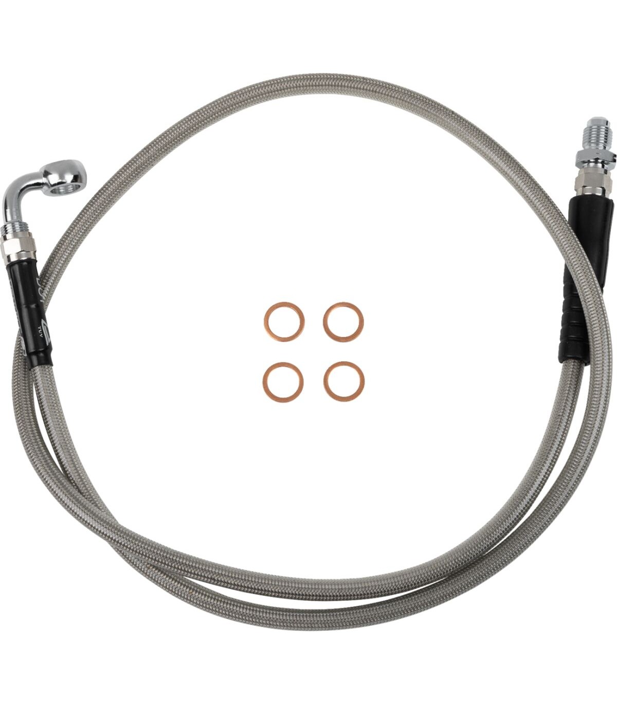 Durite d’embrayage tressée en acier inoxydableLes extrémités avec raccord tournant sont le secret d'une fixation plus facile et garantissent une installation sans plis ni contrainteAu Royaume-Uni, Venhill Engineering recommande les durites d'embrayage en acier inoxydable et les durites d'embrayage Moose RacingChaque durite se distingue par un revêtement en Teflon® DuPont de qualité exceptionnelle, est recouverte d'acier inoxydable britannique et revêtue d'une couche de PVC pour améliorer à la fois sa protection et son designLes soufflets de protection en caoutchouc et le tuyau extrêmement rigide sont utilisés pour protéger les zones vulnérables de la chaleur et des impacts et empêcher les tuyaux de se plier sous l'effet de la compressionChaque durite est conçue pour résister à une pression d'au moins 14 000 psiInstaller nos durites en acier inoxydable Moose Racing c'est choisir une performance sensiblement améliorée tout en diminuant significativement l'expansion sous pression et l'absorption d'eau par rapport aux tuyaux en caoutchouc d'origine