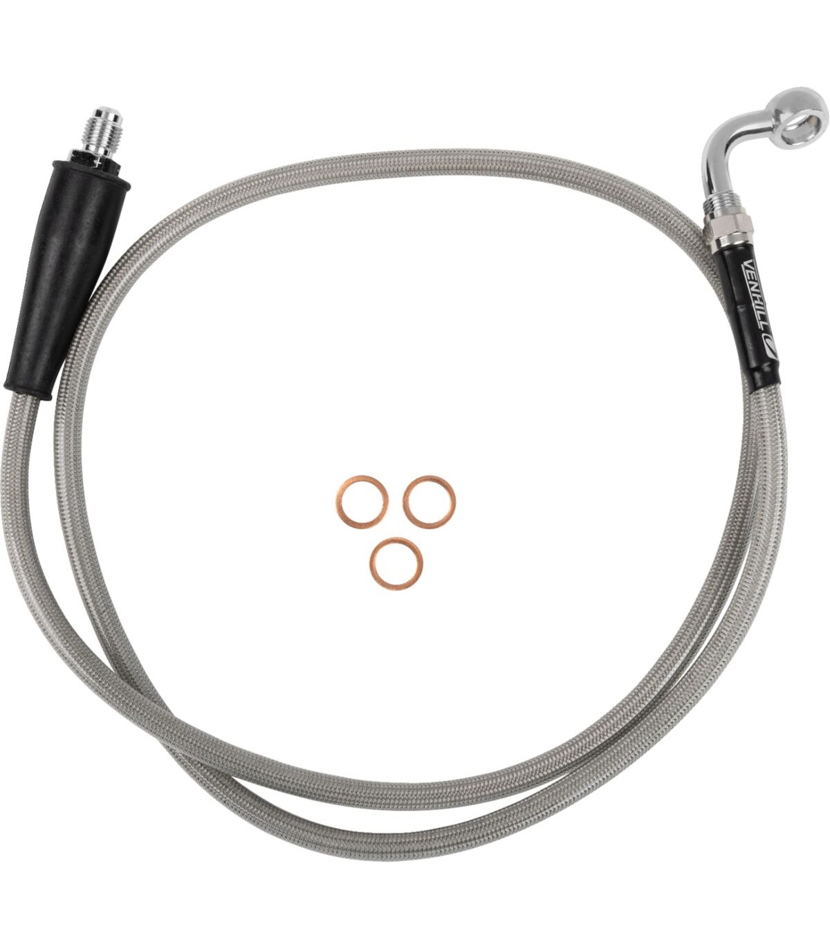 Durite d’embrayage tressée en acier inoxydableLes extrémités avec raccord tournant sont le secret d'une fixation plus facile et garantissent une installation sans plis ni contrainteAu Royaume-Uni, Venhill Engineering recommande les durites d'embrayage en acier inoxydable et les durites d'embrayage Moose RacingChaque durite se distingue par un revêtement en Teflon® DuPont de qualité exceptionnelle, est recouverte d'acier inoxydable britannique et revêtue d'une couche de PVC pour améliorer à la fois sa protection et son designLes soufflets de protection en caoutchouc et le tuyau extrêmement rigide sont utilisés pour protéger les zones vulnérables de la chaleur et des impacts et empêcher les tuyaux de se plier sous l'effet de la compressionChaque durite est conçue pour résister à une pression d'au moins 14 000 psiInstaller nos durites en acier inoxydable Moose Racing c'est choisir une performance sensiblement améliorée tout en diminuant significativement l'expansion sous pression et l'absorption d'eau par rapport aux tuyaux en caoutchouc d'origine