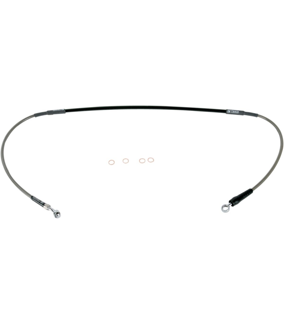 Durite de frein tressée en acier inoxydableLes extrémités avec raccord tournant sont le secret d'une fixation plus facile et garantissent une installation sans plis ni contrainteAu Royaume-Uni, Venhill Engineering recommande les durites d'embrayage en acier inoxydable et les durites d'embrayage Moose RacingChaque durite se distingue par un revêtement en Teflon® DuPont de qualité exceptionnelle, est recouverte d'acier inoxydable britannique et revêtue d'une couche de PVC pour améliorer à la fois sa protection et son designLes soufflets de protection en caoutchouc et le tuyau extrêmement rigide sont utilisés pour protéger les zones vulnérables de la chaleur et des impacts et empêcher les tuyaux de se plier sous l'effet de la compressionChaque durite est conçue pour résister à une pression d'au moins 14 000 psiInstaller nos durites en acier inoxydable Moose Racing c'est choisir une performance sensiblement améliorée tout en diminuant significativement l'expansion sous pression et l'absorption d'eau par rapport aux tuyaux en caoutchouc d'origine