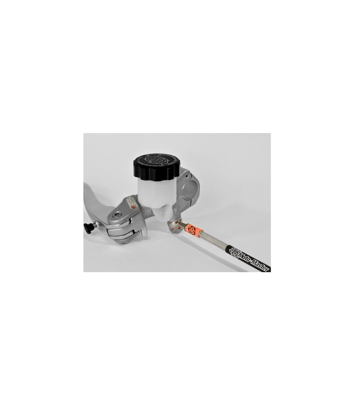 Durites de freinDoublure de durite en PTFE avec une tresse câblée en acier inoxydable qui est protégée par un revêtement en PVC durable et léger.Les banjos en acier inoxydable sont utilisés pour éliminer toute corrosion éventuelle.Les banjos sont réglables pour assurer un montage sans coupleRondelles et des instructions de montage fournies.Les durites frein aviation en acier inoxydable éliminent la sensation "spongieuse" des durites de frein en plastique standardÀ utiliser exclusivement avec le maître-cylindre radial MOTO-MASTER