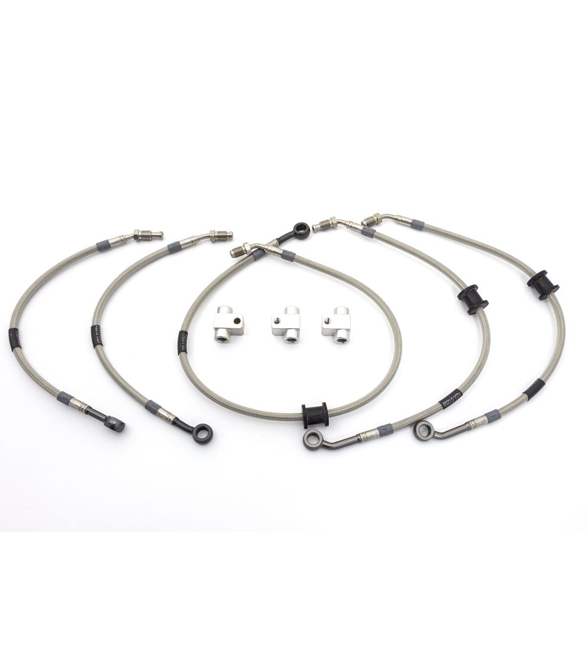 Durite de freinAmélioration significative de la réponse au freinage.Point de freinage stable, pas d'extension des durites même à des températures élevées.Les durites de frein TRW en acier tressé pour motos sont adaptées à tous les systèmes ABS et aux doubles freins combinés, même pour les modèles de motos les plus récents.Nos durites tressées en acier sont conformes à la norme fédérale internationale de sécurité des véhicules automobiles FMVSS 106.Les durites de frein tressées en acier pour motos TRW sont livrées de série avec un cache transparent et des raccords en aluminium de couleur titane.Les caches et les raccords sont également disponibles dans de nombreuses couleurs différentes, avec un design attrayant et individuel.Brake Line Kit Stainless Steel Front