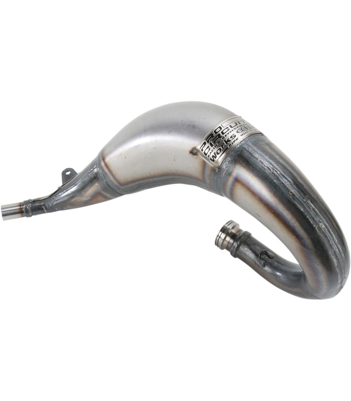 Works PipeThe first Pro Circuit pipe built with bare metal finish, giving it a unique style that sets it apart from all other pipesDurable construction conforms to the natural shape of the motorcycle for exceptional fit and performanceReinforced brackets and stingers prevent cracking, and CNC-machined flange provides precise leak-free fitDistinctive design yields increased horsepower and stronger throttle response throughout the entire rpm rangeExcellent choice for those who want factory-level high-performance featuresFeatures include stamped AKDQ high-quality carbon steel constructionHand-welded and pounded seamsEmbossed nameplate and CNC-machined exhaust flange