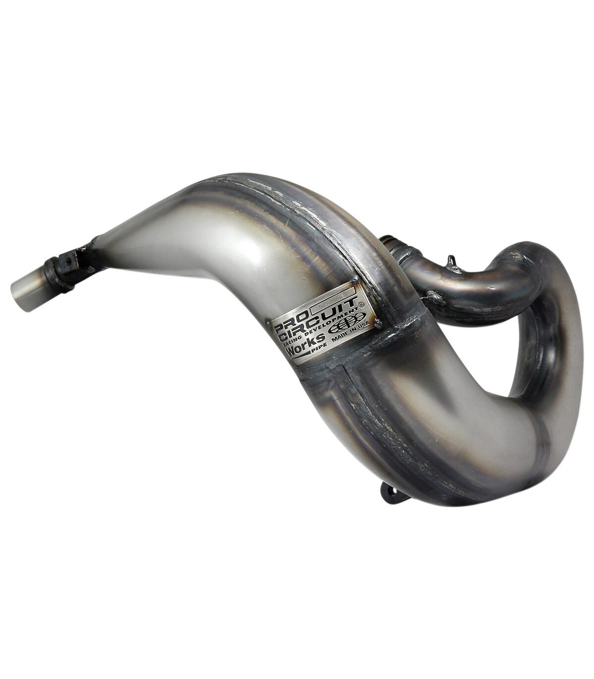 Works PipeThe first Pro Circuit pipe built with bare metal finish, giving it a unique style that sets it apart from all other pipesDurable construction conforms to the natural shape of the motorcycle for exceptional fit and performanceReinforced brackets and stingers prevent cracking, and CNC-machined flange provides precise leak-free fitDistinctive design yields increased horsepower and stronger throttle response throughout the entire rpm rangeExcellent choice for those who want factory-level high-performance featuresFeatures include stamped AKDQ high-quality carbon steel constructionHand-welded and pounded seamsEmbossed nameplate and CNC-machined exhaust flange