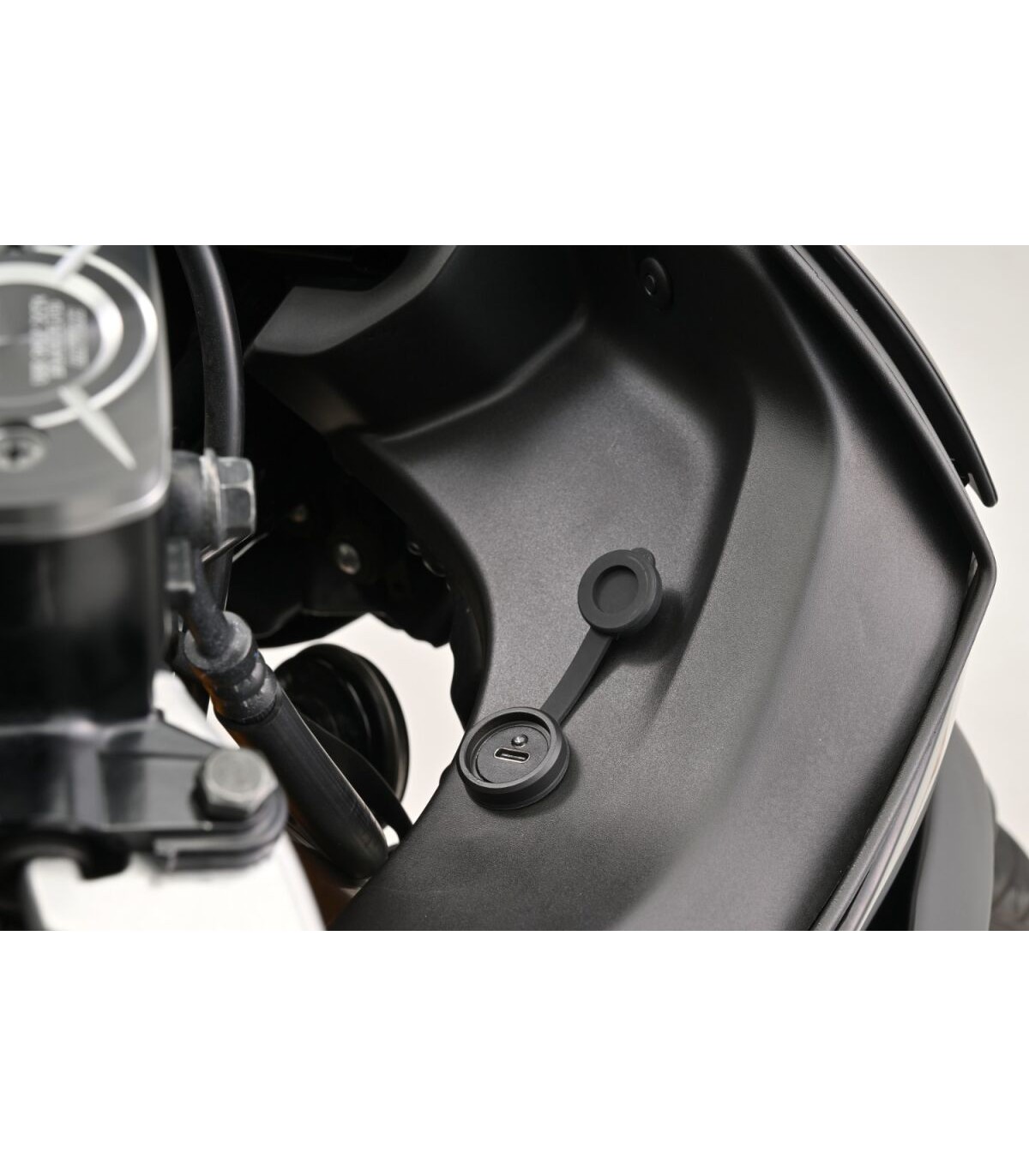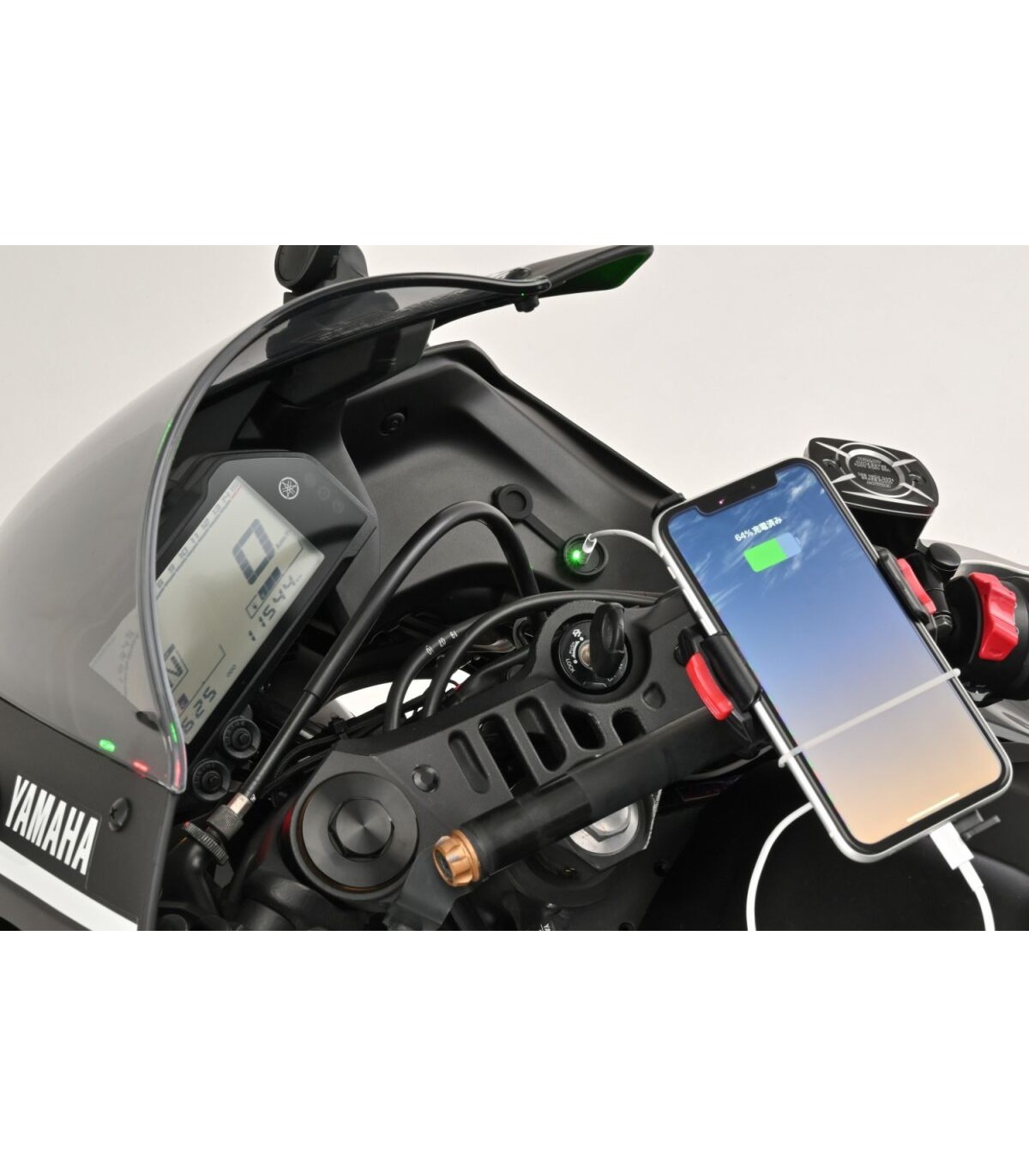USB Charging PortYou can choose the mounting method according to usage situation.The USB port becomes 5V2.4A output, and the tablet terminal can be charged.Even sudden rain with the book cap covering the power supply inlet is safe.A convenient product that can charge a battery such as a smartphone.USB Type-C Cowl Fairing Mount Ø20 mm.