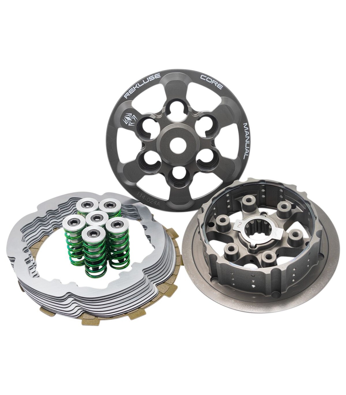 Kit d’embrayage Core ManualRéduit la déformation de l’embrayageModulation du levier constante et amélioréeLes composants sont plus légers, plus résistants et plus performants que les embrayages de sérieLa conception stratégique améliore le débit d'huile, réduit les températures de fonctionnement et prolonge la durée de vie de l’embrayageL’installation ne nécessite aucune modification des pièces de sérieComprend des disques d'embrayage lisses en acier anti-glissement brevetésFabrication aux États-Unis.