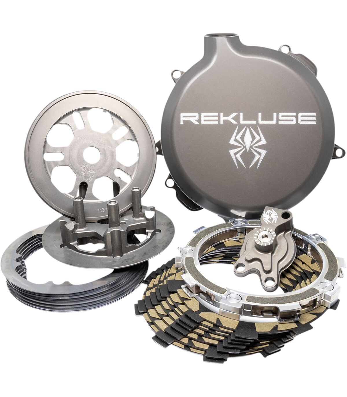 Kit d’embrayage RadiusCXRadius CX est un embrayage automatique de pointe, qui rassemble toutes les technologies de Rekluse dans un seul produitCombinée à l’EXP et à la technologie EXP de Rekluse Core, la technologie de disque garni TorqDrive offre des performances significatives avec une liaison, une sensation du levier et une durabilité exceptionnellesMeilleur démarrage, meilleure génération de vitesse, concentration sur la ligne et non sur l’embrayageLa puissance parfaite, à chaque foisRestez sur votre lancée et utilisez le couple de votre moteur sans crainte de calerMeilleur transfert de puissance que les pièces d'origineComplètement personnalisables, pour correspondre au pilote/terrainDesign optimisé de plateau de pression, qui offre les meilleures sensations de Rekluse ; contrôle et comportement cohérentsLes composants intérieurs offrent une meilleure circulation de l’huile et plus de stabilité, sur de grandes plages de températureDisques de friction TorqDrive, offrant une plus longue durée de vie d’embrayage, avec moins de réglages au fil du tempsAvec les manchons Rekluse, la cloche d'embrayage de s’use pas et aucune encoche ne se formeFabriqué aux États-Unis