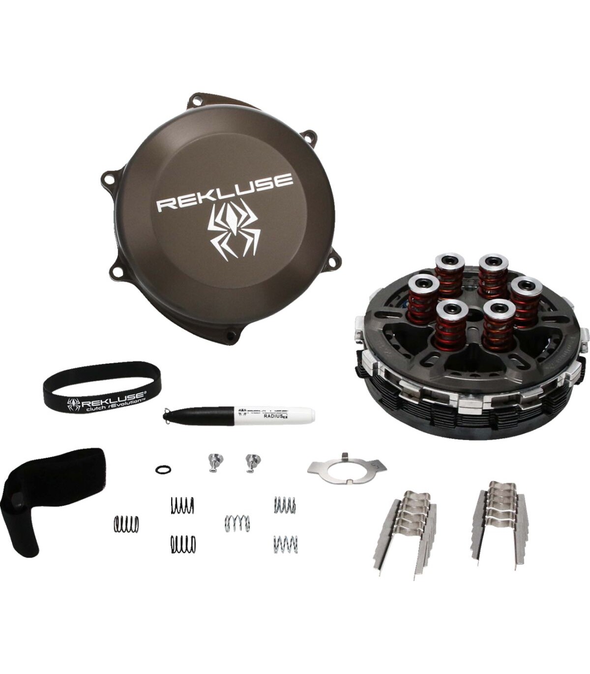 RadiusCX 4.0 Clutch KitUpdated EXP (expanding friction disk) assemblyBase material updated to provide better strength in high temperature environments, critical for the heat clutch systems createInternal wall bases redesigned for strength and rigidity, which helps translate to a more connected lever feel for the riderOn the outside of the EXP disk, friction pads now match proprietary friction design found on Rekluse TorqDrive clutch plates, this design helps match oil flow characteristics on the clutch pack beneath, promoting improved cooling capability and consistent operationEXP 4.0 wedges have been improved to now use rolling contact with built-in pinsRolling pins versus sliding creates less friction and resistance, providing smoother engagement and a more responsive feel, creating stronger power delivery overallMore direct power delivery, improved durability, and rider-focused functionalityEngagement curve designs updated to better match modern motorcycle engine characteristicsMore tuning options with varying wedge weights and EXP springs