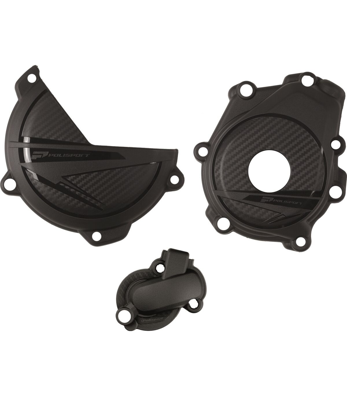 Full Engine CoverPolisport widens its line of protections with the new Engine Protection Kit, now developed to use OEM bolts for an improved resistanceEnsure all the safety of your motorcycle's engine covers, now with a new design and two texturesThe built-in o-ring ensures that trash and dust will not come in contact with the protected areaPeriodical cleaning and removal advisedNow, mounted with the original boltsIncludes Water Pump Cover ProtectionClutch and Ignition with built in Rubber O-RingEasy installation and perfect fit to the covers (no need to disassemble the covers)Hard shell in hard resistant PA6 (polyamide)Slim design to minimize interference with the rider's bootsResistance to high continuous temperatureCompatible only with stock covers