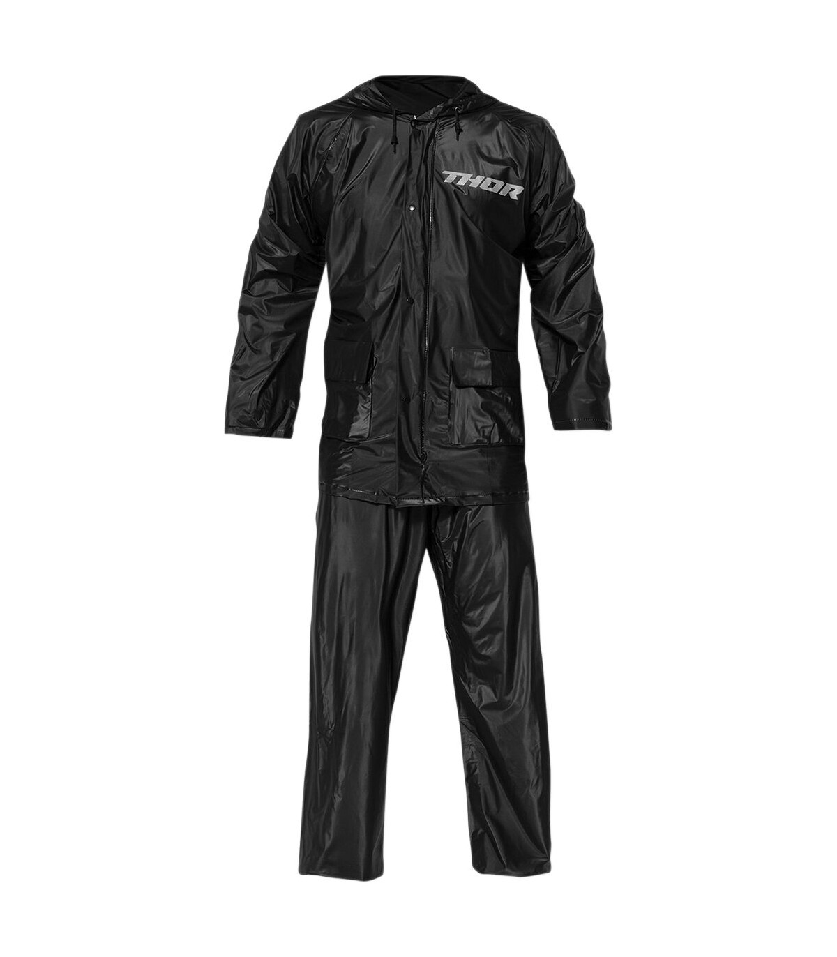 PVC RainsuitMade of lightweight PVCHooded jacket features front zip closure with storm flapElastic waist pants feature snap cuffs on each legNot intended for riding use.