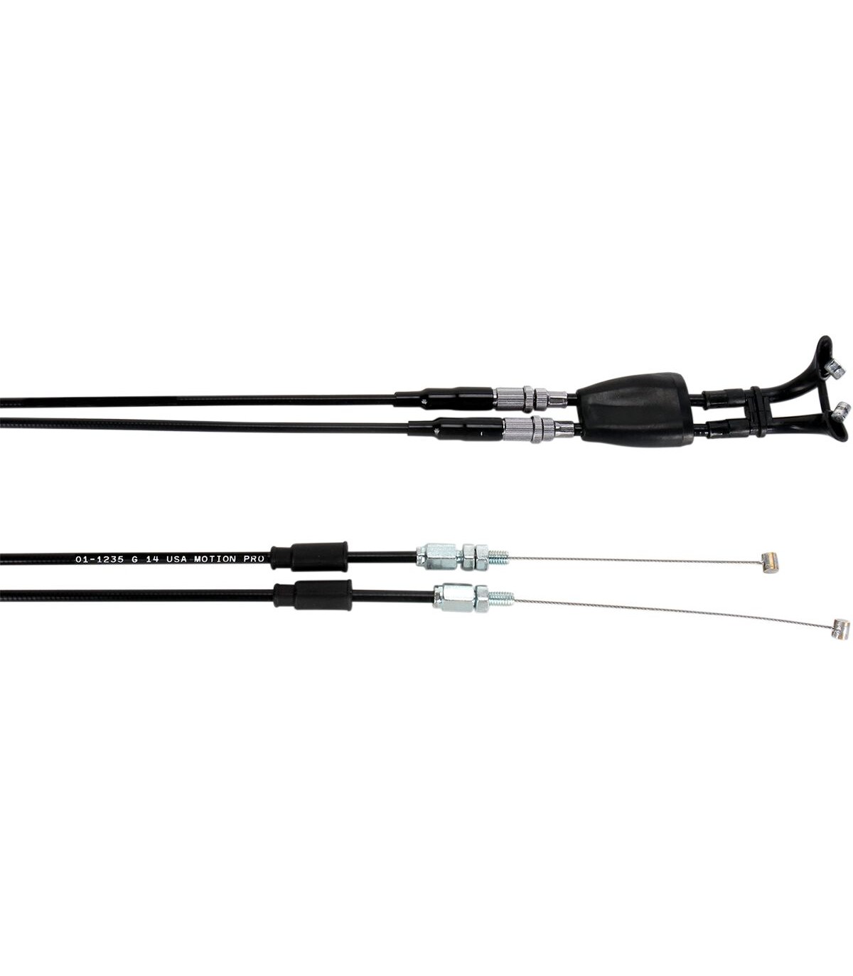 Rev2 Throttle KitUltra compact housing with snap-together elbows make it easy to install and change reelsRequires less handlebar space for lever clearance and throttle positionSmaller reels for slower throttle rate and larger reels for faster throttle rateCable boot keeps dirt and dust out for reliable and smooth operationLower section of cables use 5mm housing with PTFE liner for reduced friction, increased routing flexibility and lighter weightUpper section of cables use 6mm housing to provide solid support of adjustersKit includes Rev 2 throttle assembly with throttle tube, black vinyl cables, standard interchangeable reels and cam reel