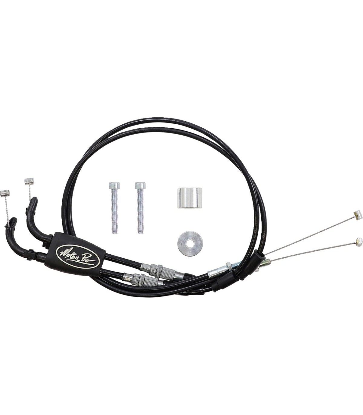 Rev3 Variable Rate Throttle KitSlim REV3™ throttle housing allows more room for lever clearance and adjustment to throttle housing positionInnovative reel changing system lets you tailor the throttle rate to your preference and riding conditionsFive different reels provide perfect throttle response for any condition: Use smaller reels for slower throttle rate and larger reels for faster throttle rate; included cam reel provides progressive throttle response preferred by some ridersCable boot keeps dirt and dust out for reliable and smooth operationImproved throttle stop provides greater strength and durability - Snap together elbows makes it even easier to install and change reelsREV3™ off-road kits are compatible with Motion Pro DirtControl™ V2 Lock-On grips and ODI Lock-On gripsBillet aluminum inline cable adjusters ease installation and adjustmentLower section of cables use 5 mm housing with PTFE liner for reduced friction, increased routing flexibility and lighter weightSimple to install and maintainUpper section of cables use 6 mm housing to provide solid support of adjustersPatentedRev3 Kits have cables specifically designed for fitment on specific models, but the Rev3 throttle itself is not model specific. Therefore, in some situations, the Rev3 kit may not be a direct bolt on installation due to space limitations on the stock handlebar. In some installations, it may be necessary to move other control components on the stock handlebar, shorten the Rev3 throttle tube and grip, install longer after market handlebars, or possibly all of the above. It is up to the end user to determine the best method for fitment on their motorcycle, and ensure that the Rev3 kit is installed properly and with the correct clearances for safe operation. Installation should be done by a qualified mechanic and carefully checked for proper function. Warning: Improper installation could result in great bodily injury or death. For use with stock throttle body; stock reel is 33.4 mm.
