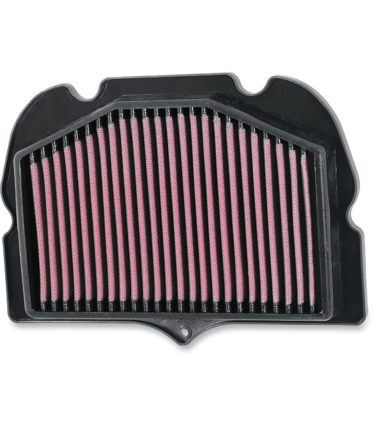 High-Flow Air Filter™ pour moto sportive et moto de courseMoins de plis que les filtres à air standards K&N, ce qui ouvre l'ailette d'entrée d'airAugmentent la puissance des motos sportives modifiéesDes modifications de la gestion du carburant pourraient être nécessairesDeux couches de média filtrant en cotonFabrication aux États-Unis depuis plus de 50 ansPour course sur circuit fermé et compétition