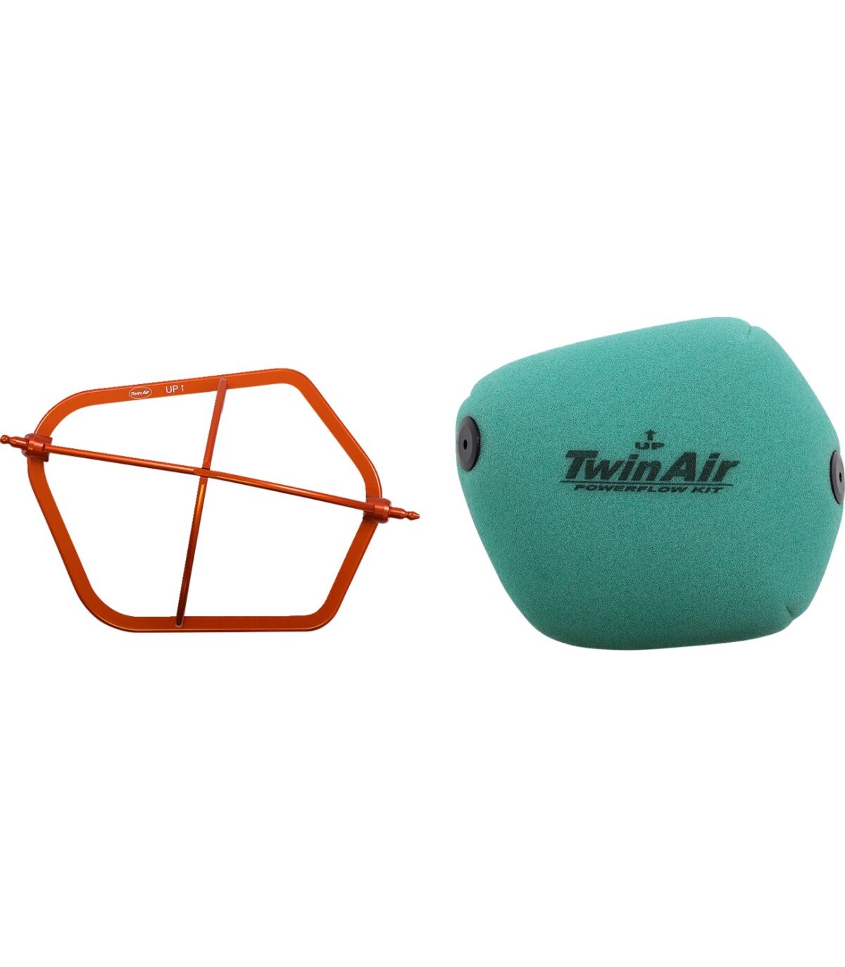 Powerflow Air Filter KitCombines a larger Twin Air filter with a tough, ultra-lightweight flange that bolts tightly onto the airbox to eliminate leaks and provide more air for more powerEach kit contains necessary mounting hardware, Twin Air dual-stage filter, billet flanges and/or wire cageFilter is easy to remove for cleaning and maintenance