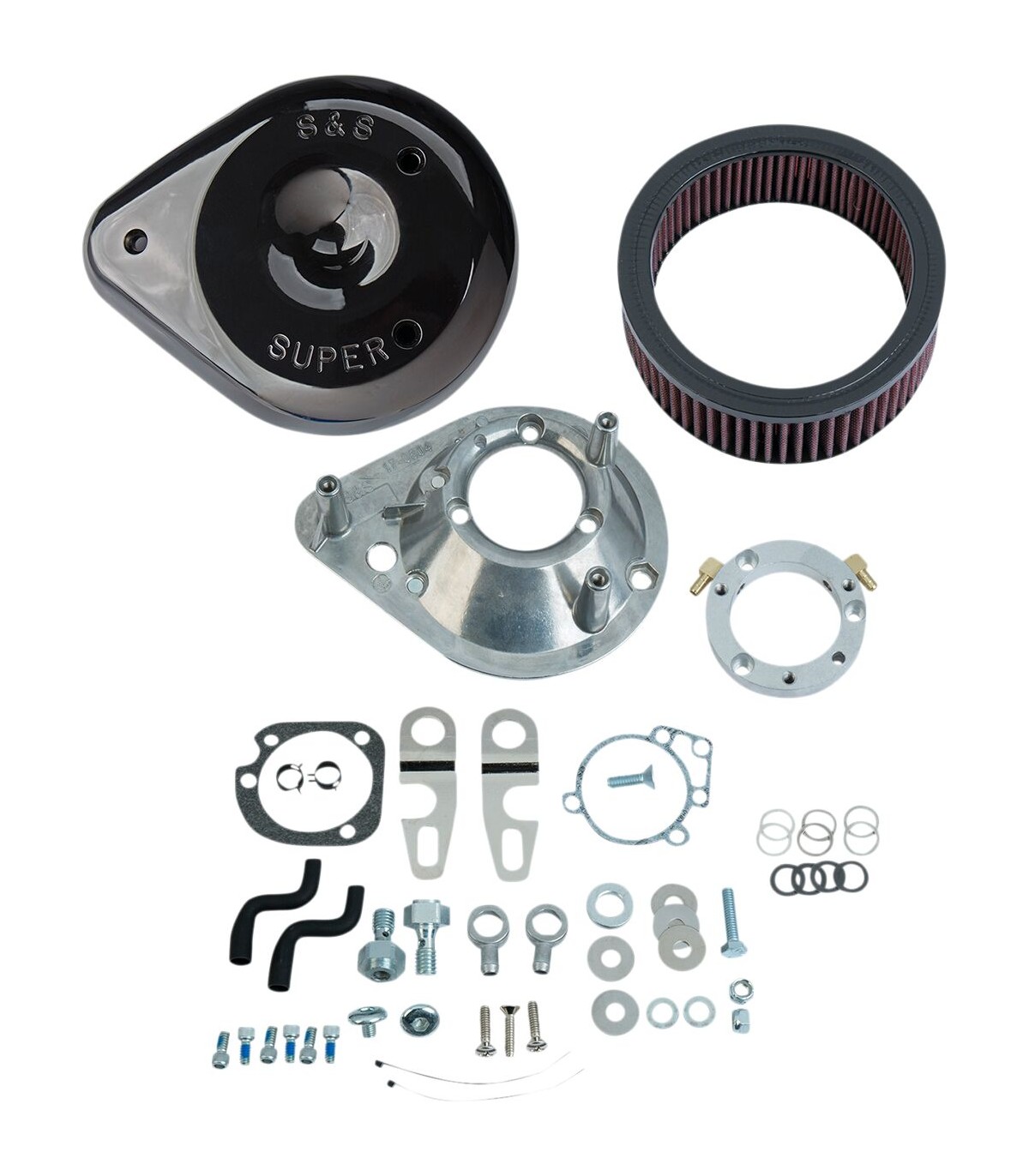Teardrop Air CleanerOriginal S&S teardrop air cleaner assemblyIncrease horsepower with no other changesIncludes S&S cover, backing plate and high-quality filter element and hardware kitAvailable for most OEM carburetors and S&S performance intake systemsMade in the USAInstallation of an S&S air cleaner my require re-jetting or engine re-tuning. However tuning with the OEM emissions standards is required to maintain E.O. validity.