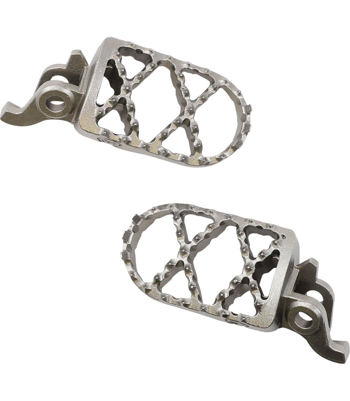 Repose-pieds ProFabrication à partir d'acier inoxydable 17-4 trempé, coulé et traité thermiquementLarge de 57 mm et longue de 90 mm, cette plate-forme légèrement convexe permet de mieux positionner la botte et améliore l'adhérence quand vous vous penchez vers l'avant ou l'arrièreSurface plus large avec dents crénelées pour une bonne adhérenceConçus pour les pilotes agressifsFabrication aux États-Unis