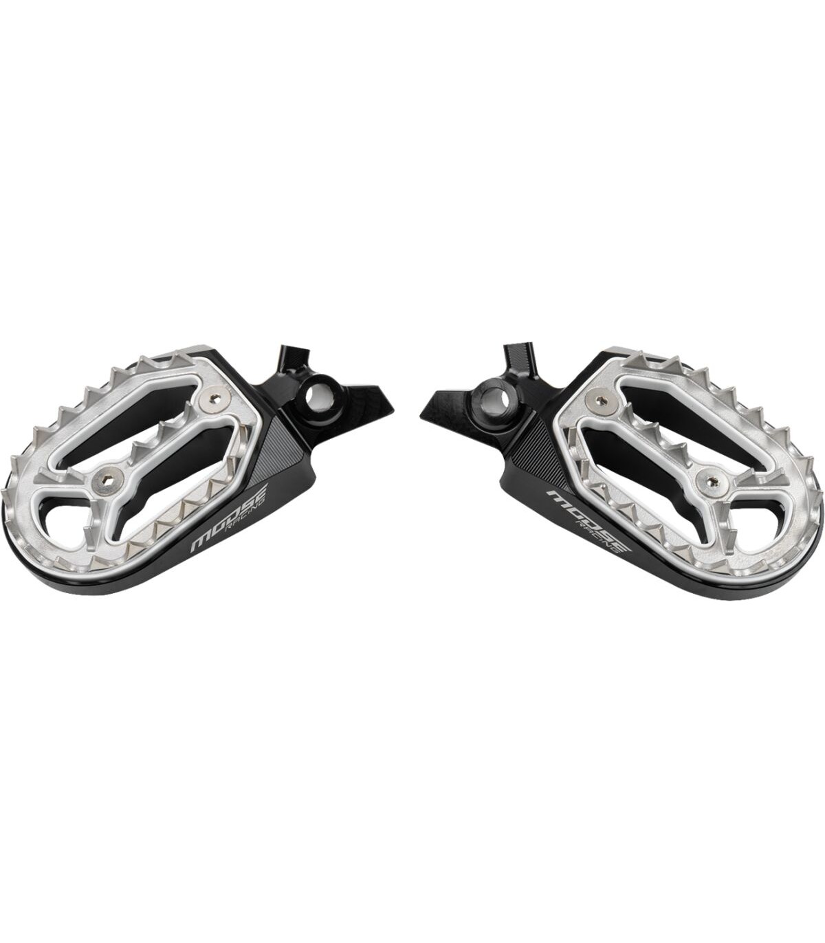 Repose-pieds QualifierRepose-pied en deux parties au design légerAlliage d'aluminium usiné CNCPlateau repose-pied extrêmement large en acier inoxydable pouvant être remplacé et offrant au pilote une adhérence ultimeLe plateau repose-pied en acier inoxydable est en outre intégré à un amortisseur en caoutchouc qui amortit les chocsUtilisent les ressorts d'origine