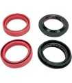 Kit de joints spy/cache-poussièreLe profil étanche est conçu pour créer une pression homogène dans chaque joint à lèvre. La pression de joint homogène crée moins de traînée et augmente la durée de vie du jointLe système breveté MAX-LIFE a un coefficient de friction jusqu’à 3 fois inférieur à celui du joint d’origineTriple joint à lèvreDyno testé pour durer 3 à 4 fois plus longtemps que les joints d’origineLes nervures directionnelles permettent d'installer facilement le jointLe kit inclut des joints spy de fourche et des joints racleurs.