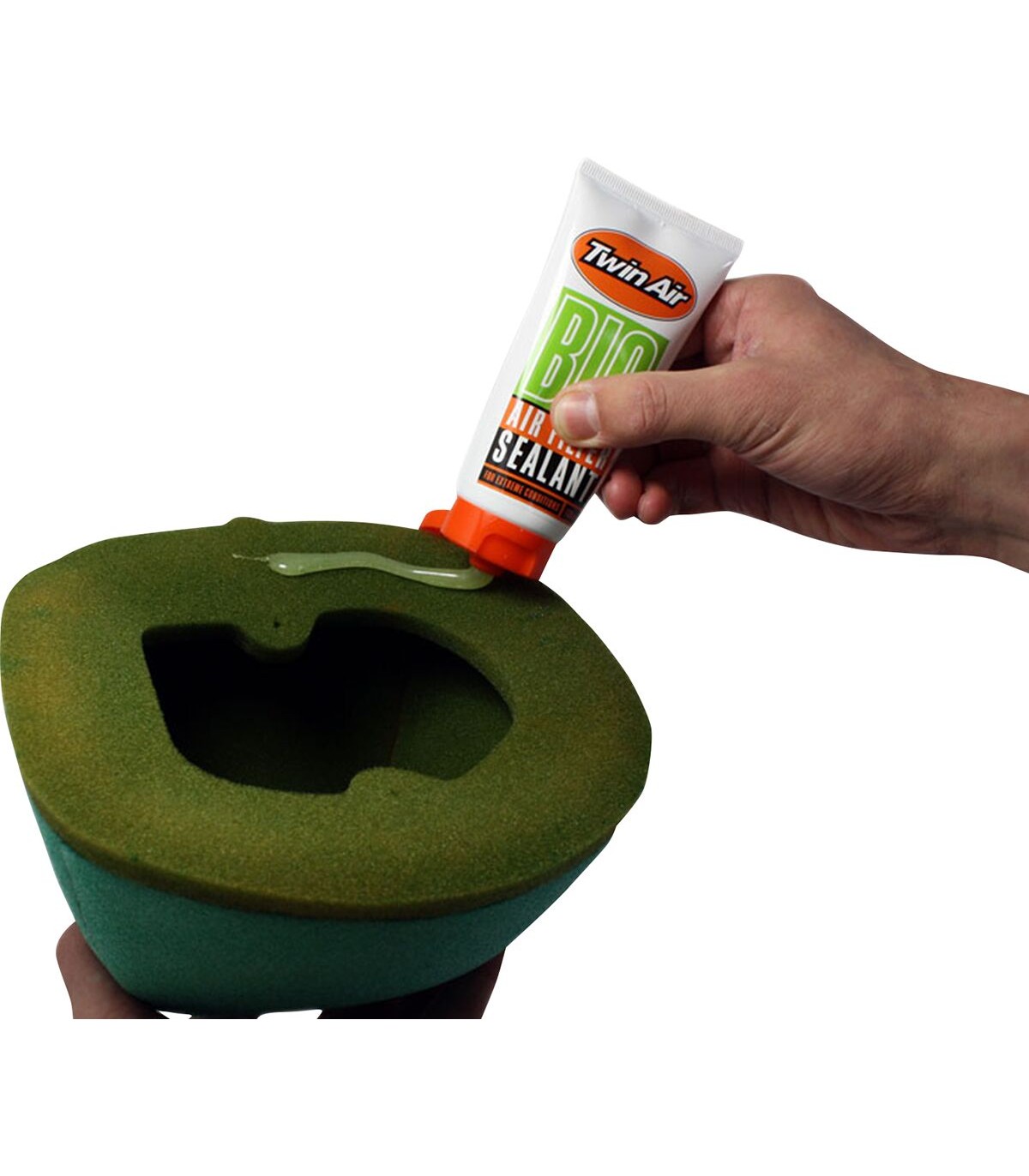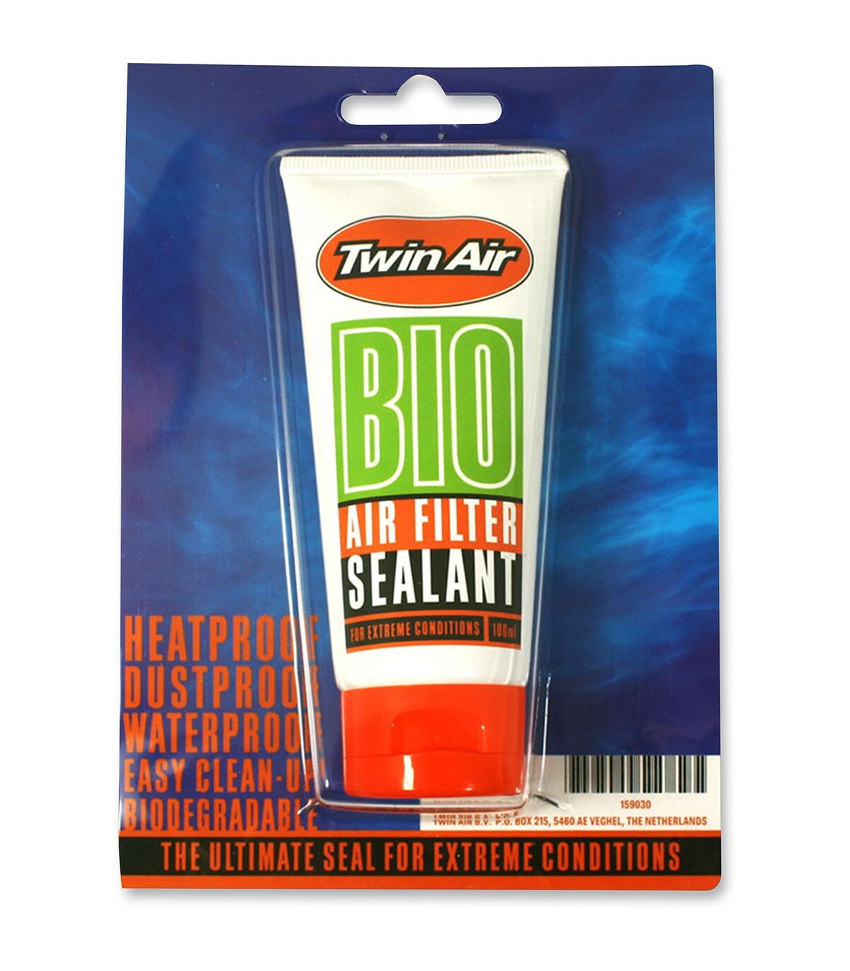 Bio Air Filter SealantBiodegradable Sealant to be used on the sealing ring of a foam air filter while riding in very extreme conditionsWith a filter that is properly and evenly oiled, including the foam sealing ring, this new paste-like sealant product stops any debris from passing through the foam filter at the contact point on the airboxEasily cleaned with Twin Air BIO Dirt Remover or Twin Air Liquid Dirt RemoverAvailable in 100mL tubes