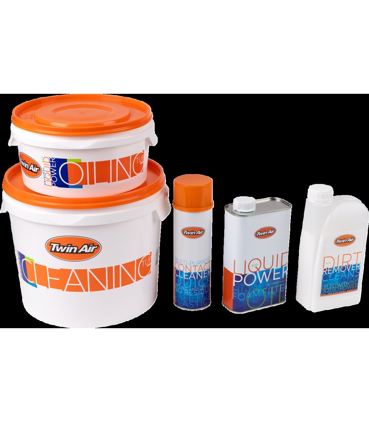 Bio SystemThe System is the full filter care solutionKit comes with everything needed to clean Twin Air air filters in a sturdy storage box complete with carrying handlesKit includes: a Twin Air cleaning tub, oiling tub, BIO Dirt Remover (1L), BIO Liquid Power Filter Oil (1L), and multi-purpose contact cleaner (500 ml aerosol)Cleaning tub is resealable and comes with a filter tray that allows dirt to sink to the bottom, away from filtersOiling tub allows filters to be submerged for easy, even oilingWhen not in use, the oiling tub is resealable, enabling users to save unused filter oil