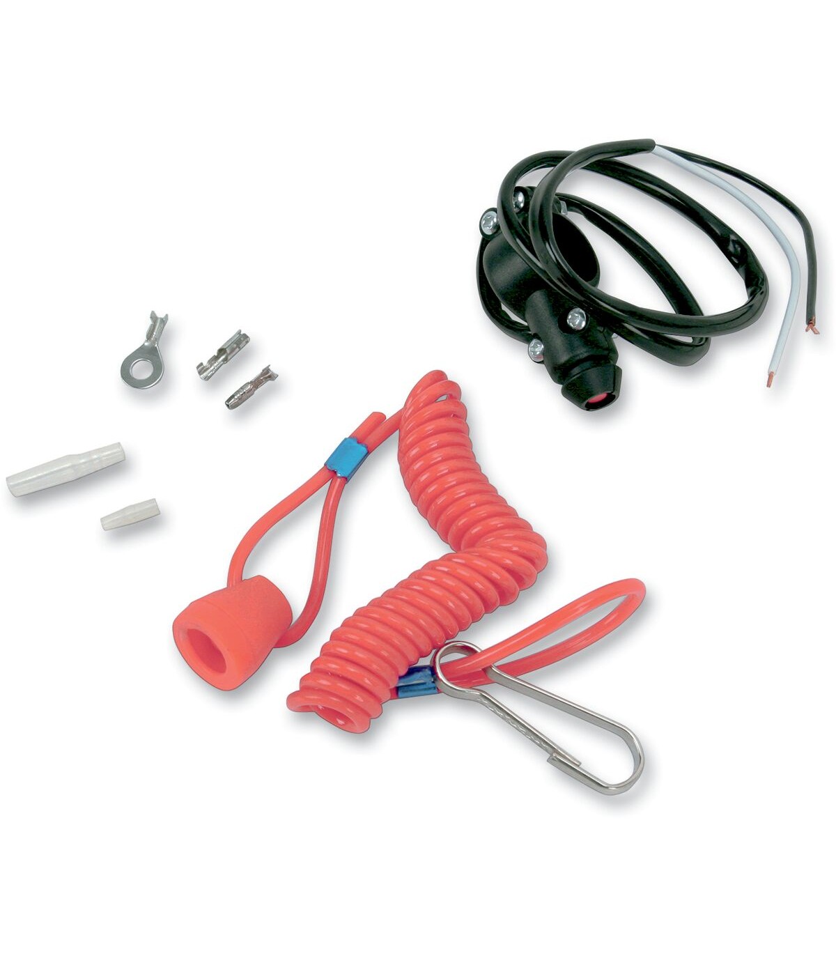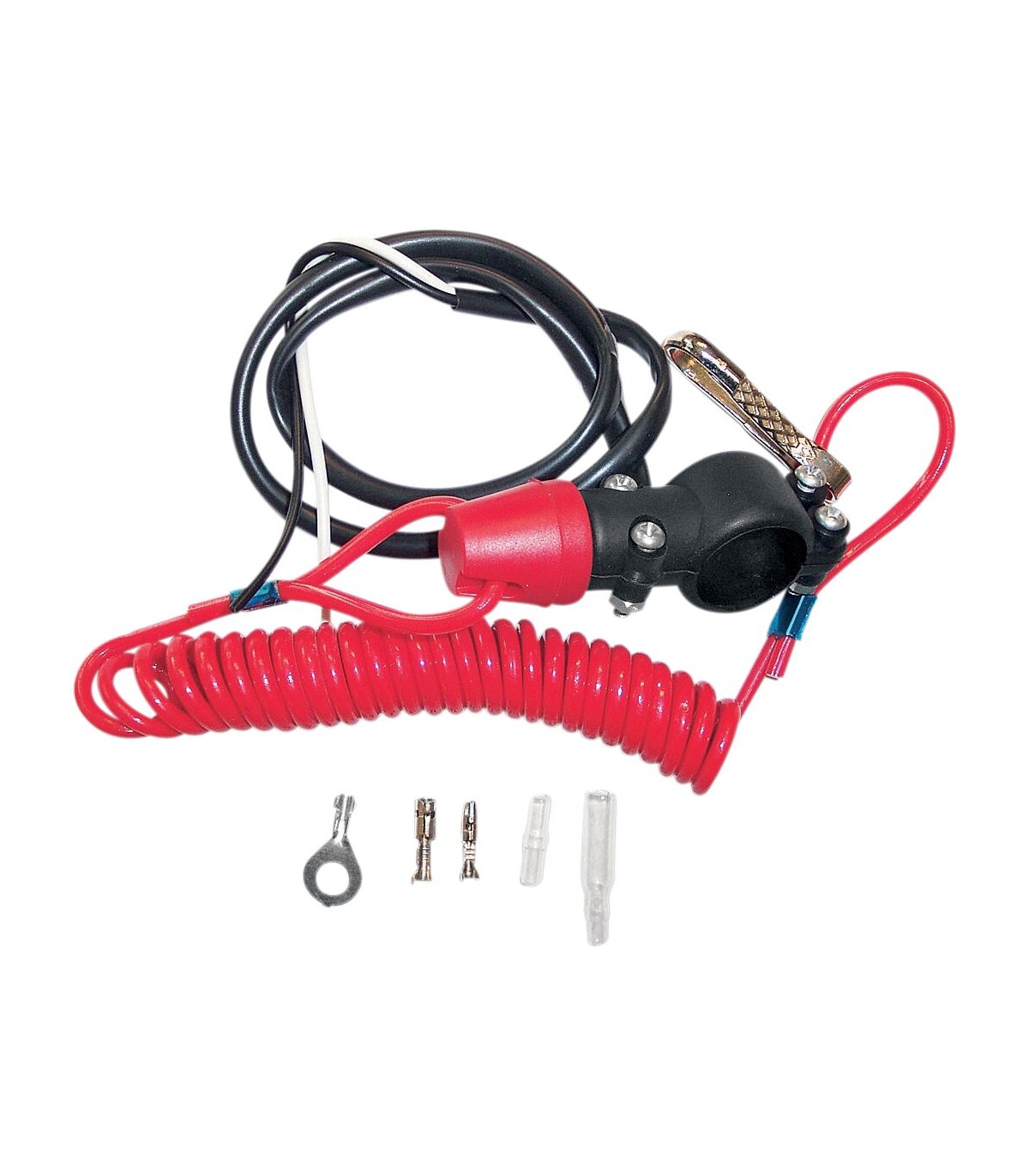 Coupe-circuit avec cordonCoupe le moteur en cas de chute du piloteSe fixe facilementDisponibles en version à fixer sur des guidons de 7/8’', ou sur le panneauLe contacteur à fixation sur panneau inclut un câble de 9,25”, un cordon de 51” et un filetage de 10,5 mm de diamètreNormalement ferméPour guidons de 22 mm (0,875 pouce)