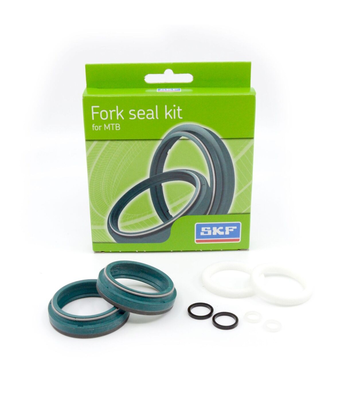 Fork Seal KitFor a correct assembly of the Fork seal kit for mountain bike applications, SKF recommends:- to clean and remove all lubricant residual from the seal seat prior to the assembly of the seal- to not lube the external rubber press fit surface of the seal with oil, grease or other substances.In the realm of modern mountain biking, a component often overlooked yet critical is the humble fork wiper. Despite its small size, it plays a pivotal role in shaping your suspension experience and requires more frequent replacement than commonly realized. Riders often push their forks to the limit by neglecting wiper and lubricating bath oil changes, impacting both performance and longevity. While fork manufacturers have made strides in their seal systems, SKF introduces a range of aftermarket seals meticulously tuned to minimize friction, elevate suspension feel, and extend fork life. SKF seals excel in sealing out water and dirt, ensuring cleaner lubrication oil throughout the seal's lifespan.Crafted to deliver an unparalleled riding experience, SKF mountain bike fork seal kit is more than just a small component—it's a game-changer for your biking adventure. Engineered for minimal friction during operation, it ensures maximum ground contact, translating into an extraordinary sensation with every ride. Tailored specifically for high-end mountain bike forks, this kit offers a versatile solution that fits various models, promising an upgrade that goes beyond expectations.What sets us apart is the utilization of the same self-lubricating compound that has proven its worth in motorcycle applications, ensuring superior sealing performance.Whether you prefer original equipment or aftermarket fork oils, SKF kit is compatible with a broad range, giving you the flexibility to choose what suits your ride best. But the real magic lies in its ability to combat the elements. With top-notch defense against water and dirt ingress, this kit extends the life of your fork, making sure you're ready for whatever the trail throws at you. UV light exposure? Not a problem. SKF kit is built to withstand it, maintaining durability even in challenging conditions.This kit is not just about enhancing your riding experience; SKF is committed to longevity. By minimizing wear and air suction, SKF kit contributes to an extended operational life for your trusty bike. And with a wide range of sizes, tailored to fit most mountain bike fork applications, we've got you covered.The SKF mountain bike fork seal kit is more than just a collection of parts. It's your ticket to a smoother ride, a longer-lasting fork, and hassle-free maintenance. Two integrated oil seal-dirt scrapers, crush washers, and pre-impregnated foam rings—our comprehensive package is designed with your biking pleasure in mind. Depending on the fork manufacturer, you may find two oil seals and two dirt scrapers in your kit.The integrated dust sealing lip acts as the first line of defense, keeping dirt at bay and preventing contamination of other crucial fork components. Simultaneously, the integrated oil sealing lip ensures your fork retains optimal oil levels, ensuring consistent performance. To top it off, the pre-impregnated foam ring enhances friction reduction, giving you a smoother, more responsive fork.Ready for an upgrade? SKF user-friendly design ensures quick and hassle-free replacement during periodic oil service, allowing you to focus on what matters—your next thrilling ride. Elevate your biking adventure with SKF's advanced mountain bike fork seal kit.For Fox Forks