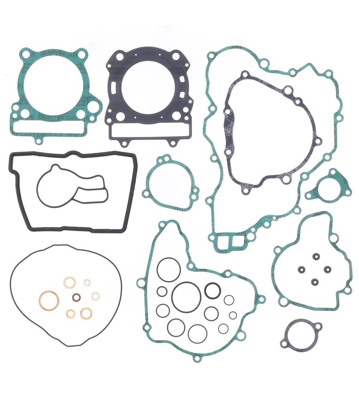 Kits de joints completKit de joints de qualité supérieure fabriqués par Athena S.p.A.Joints de culasse caractérisés par une structure ondulable en acier revêtu de caoutchoucLes joints d’embase en acier doux sont revêtus de caoutchoucLes matériaux de base en métal se caractérisent par une haute compression et une résistance à la tension supérieureLa couverture transparente révolutionnaire garantit une étanchéité parfaite même à des températures extrêmement élevéesCouche de silicone bleue de haute température sur la plupart de joints plats essentielsLes kits de joints complets comprennent tous les joints nécessaires pour reconstruire le joint haut et la partie inférieure du moteur, y compris tous les joints en caoutchouc et les joints toriques, partie supérieure et inférieure.