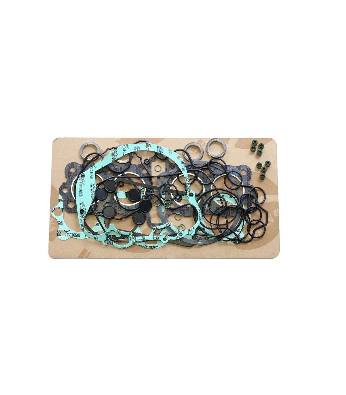 Kits de joints completKit de joints de qualité supérieure fabriqués par Athena S.p.A.Joints de culasse caractérisés par une structure ondulable en acier revêtu de caoutchoucLes joints d’embase en acier doux sont revêtus de caoutchoucLes matériaux de base en métal se caractérisent par une haute compression et une résistance à la tension supérieureLa couverture transparente révolutionnaire garantit une étanchéité parfaite même à des températures extrêmement élevéesCouche de silicone bleue de haute température sur la plupart de joints plats essentielsLes kits de joints complets comprennent tous les joints nécessaires pour reconstruire le joint haut et la partie inférieure du moteur, y compris tous les joints en caoutchouc et les joints toriques, partie supérieure et inférieure.