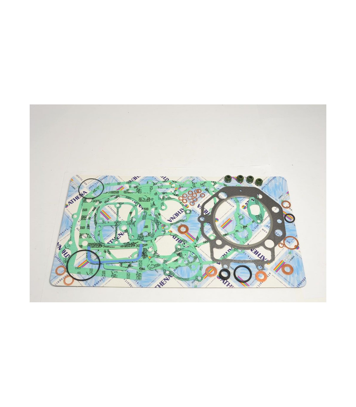 Kits de joints completKit de joints de qualité supérieure fabriqués par Athena S.p.A.Joints de culasse caractérisés par une structure ondulable en acier revêtu de caoutchoucLes joints d’embase en acier doux sont revêtus de caoutchoucLes matériaux de base en métal se caractérisent par une haute compression et une résistance à la tension supérieureLa couverture transparente révolutionnaire garantit une étanchéité parfaite même à des températures extrêmement élevéesCouche de silicone bleue de haute température sur la plupart de joints plats essentielsLes kits de joints complets comprennent tous les joints nécessaires pour reconstruire le joint haut et la partie inférieure du moteur, y compris tous les joints en caoutchouc et les joints toriques, partie supérieure et inférieure.