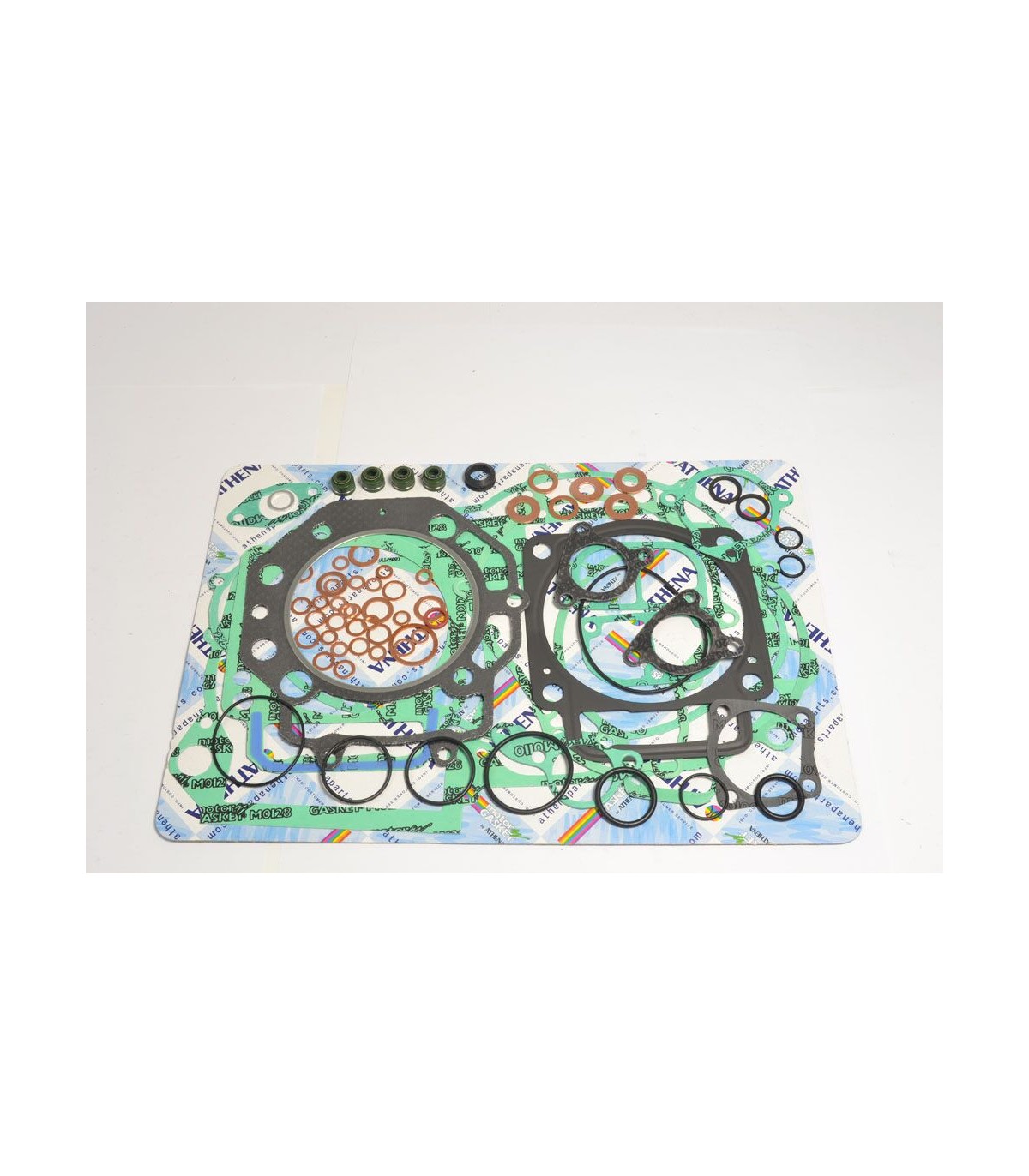 Kits de joints completKit de joints de qualité supérieure fabriqués par Athena S.p.A.Joints de culasse caractérisés par une structure ondulable en acier revêtu de caoutchoucLes joints d’embase en acier doux sont revêtus de caoutchoucLes matériaux de base en métal se caractérisent par une haute compression et une résistance à la tension supérieureLa couverture transparente révolutionnaire garantit une étanchéité parfaite même à des températures extrêmement élevéesCouche de silicone bleue de haute température sur la plupart de joints plats essentielsLes kits de joints complets comprennent tous les joints nécessaires pour reconstruire le joint haut et la partie inférieure du moteur, y compris tous les joints en caoutchouc et les joints toriques, partie supérieure et inférieure.