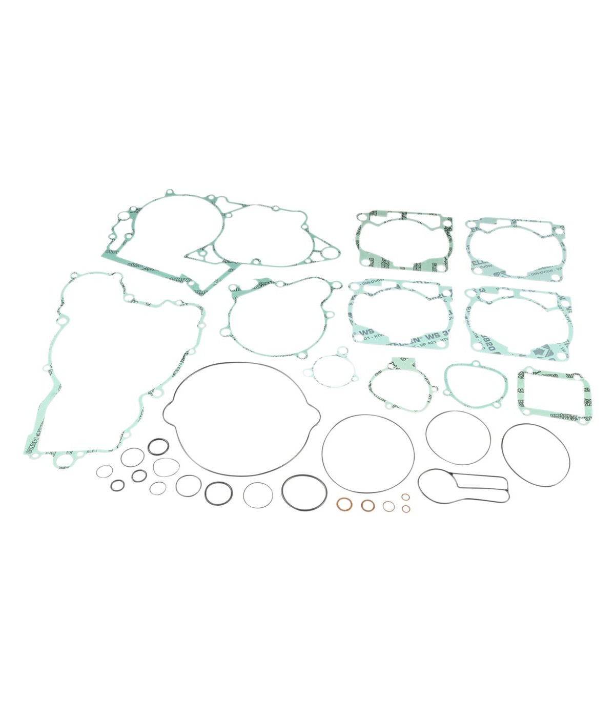 Kit de jointsJeux de joints de qualité supérieure fabriqués par AthenaJoints de culasse caractérisés par une structure ondulable en acier revêtu de caoutchoucLes joints d’embase en acier doux sont revêtus de caoutchoucLes matériaux de base en métal se caractérisent par une haute compression et une résistance à la tension supérieureLa révolutionnaire couverture transparente garantit une étanchéité parfaite même à des températures extrêmement élevéesCouche de silicone bleue de haute température sur la plupart de joints plats essentielsInclut les joints, pièces en caoutchouc et joints de queue de soupape de qualité supérieure nécessaires au reconditionnement, respectivement, du haut-moteur et du moteur completJoints spy non inclus