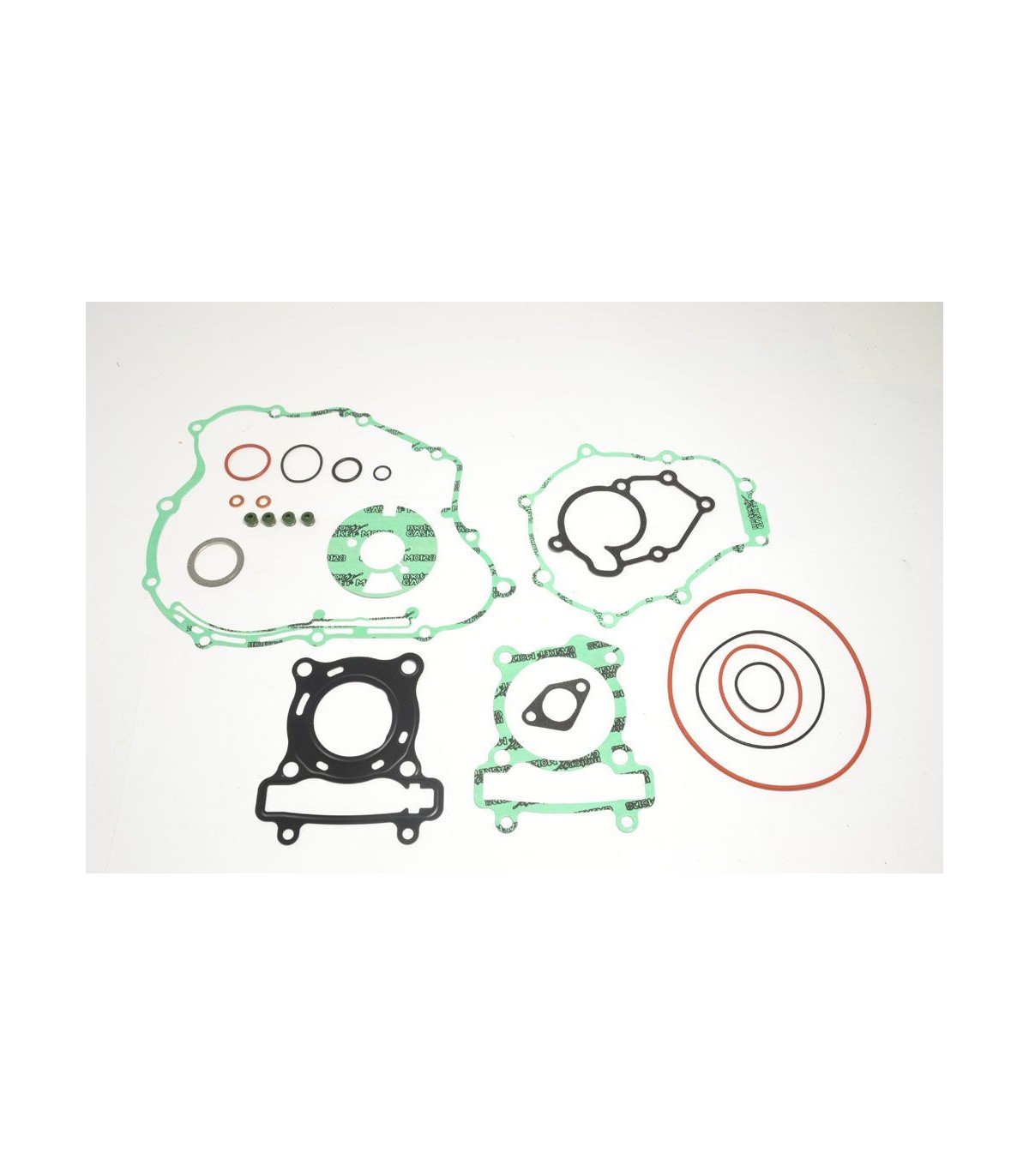 Kits de joints completKit de joints de qualité supérieure fabriqués par Athena S.p.A.Joints de culasse caractérisés par une structure ondulable en acier revêtu de caoutchoucLes joints d’embase en acier doux sont revêtus de caoutchoucLes matériaux de base en métal se caractérisent par une haute compression et une résistance à la tension supérieureLa couverture transparente révolutionnaire garantit une étanchéité parfaite même à des températures extrêmement élevéesCouche de silicone bleue de haute température sur la plupart de joints plats essentielsLes kits de joints complets comprennent tous les joints nécessaires pour reconstruire le joint haut et la partie inférieure du moteur, y compris tous les joints en caoutchouc et les joints toriques, partie supérieure et inférieure.