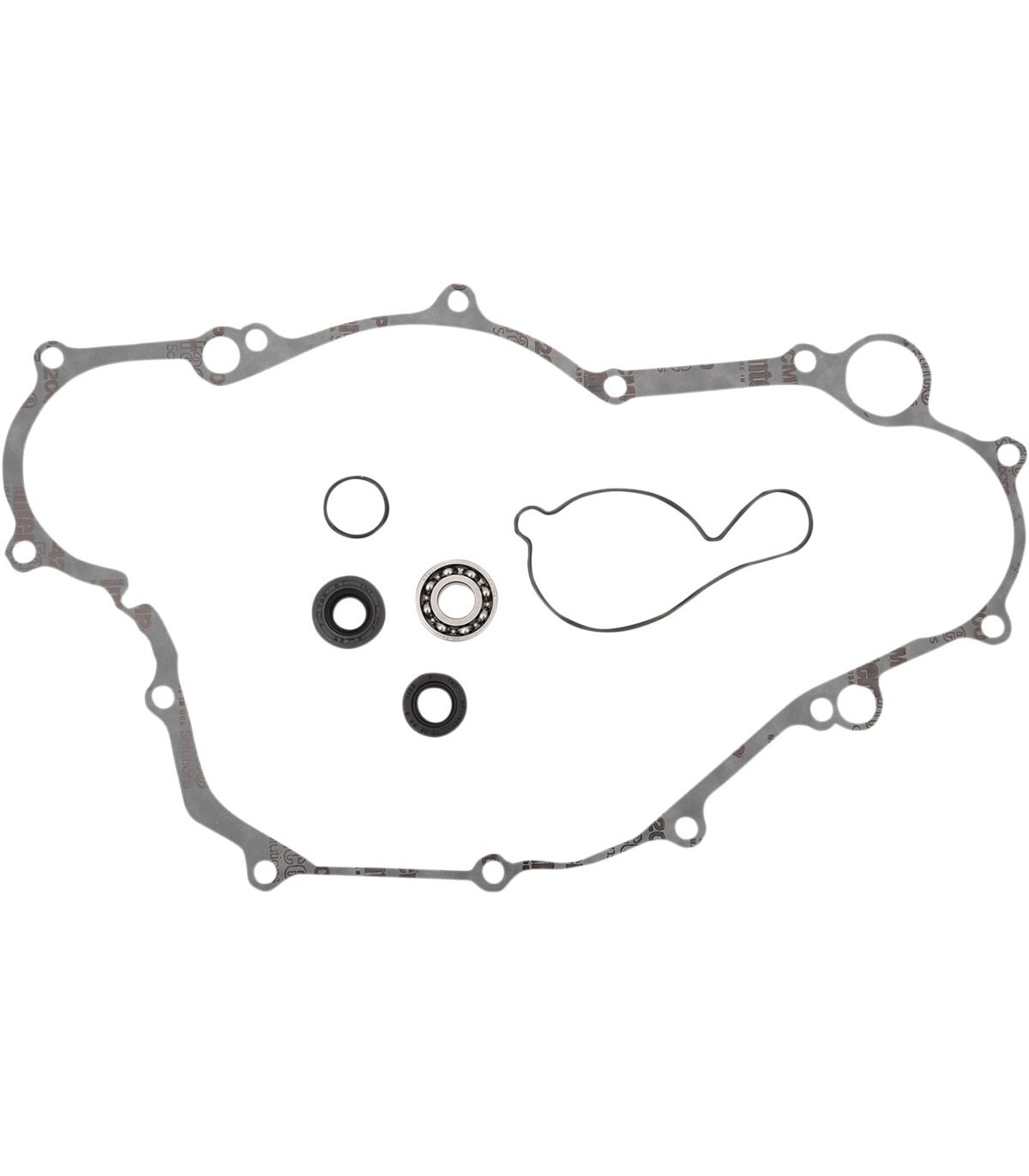 Kit réparation pompe à eauRenferme tous les joints, joints toriques, roulements et joints spy nécessaires pour réparer une pompe à eauLe kit contient les éléments suivants : roulements le cas échéant, joints en caoutchouc, joint de pompe à eau mécanique le cas échéant, joint de carter latéral, joint de pompe à eau, circlips sur l’axe de pompe à eau et joints de vidange en cuivre.
