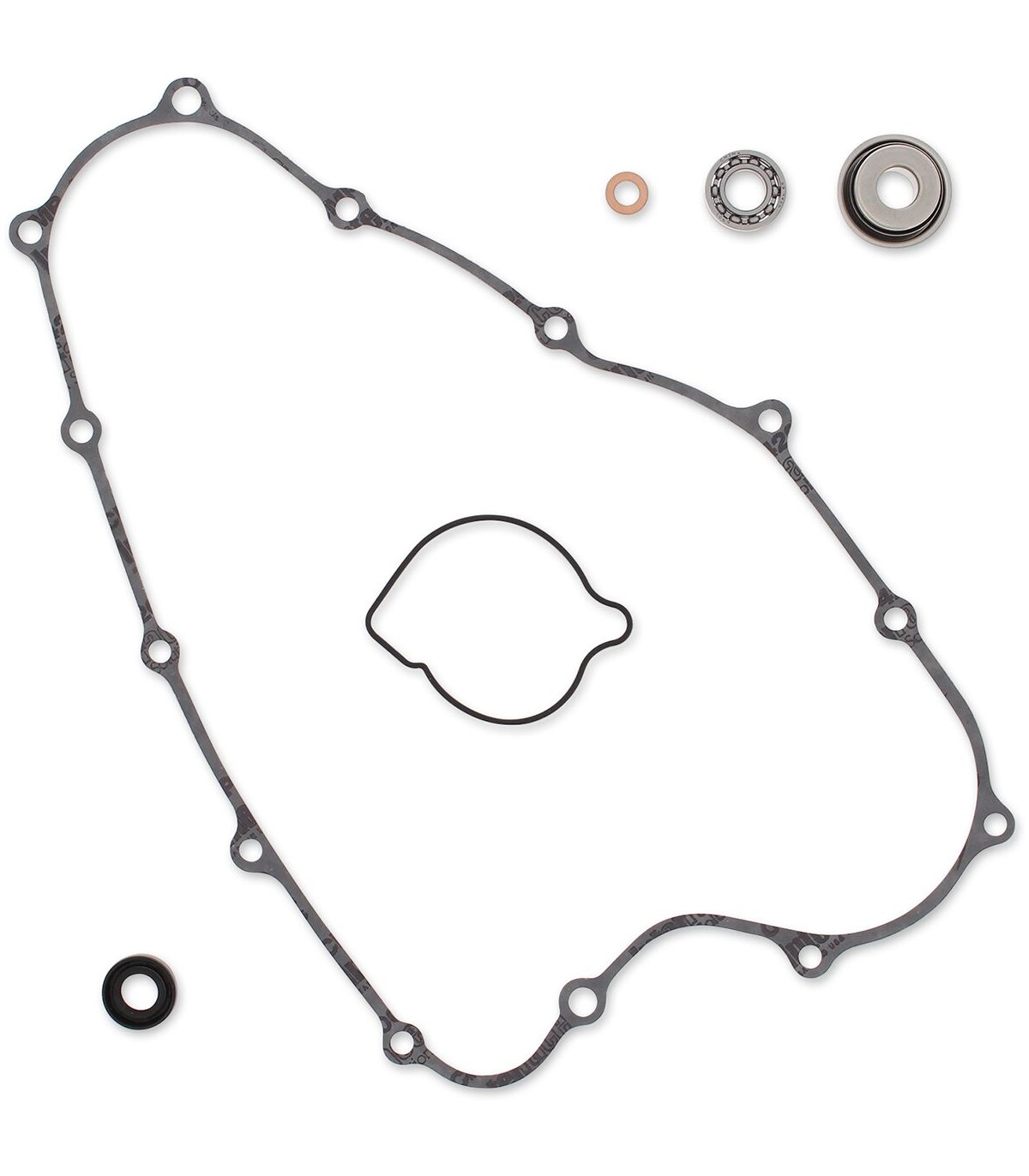 Kit réparation pompe à eauRenferme tous les joints, joints toriques, roulements et joints spy nécessaires pour réparer une pompe à eauLe kit contient les éléments suivants : roulements le cas échéant, joints en caoutchouc, joint de pompe à eau mécanique le cas échéant, joint de carter latéral, joint de pompe à eau, circlips sur l’axe de pompe à eau et joints de vidange en cuivre.