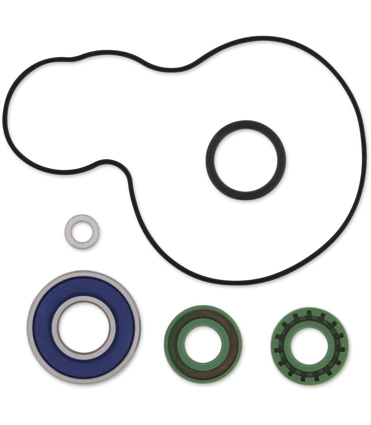 Kit réparation pompe à eauRenferme tous les joints, joints toriques, roulements et joints spy nécessaires pour réparer une pompe à eauLe kit contient les éléments suivants : roulements le cas échéant, joints en caoutchouc, joint de pompe à eau mécanique le cas échéant, joint de carter latéral, joint de pompe à eau, circlips sur l’axe de pompe à eau et joints de vidange en cuivre.
