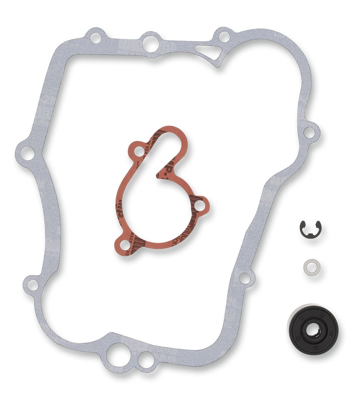 Kit réparation pompe à eauRenferme tous les joints, joints toriques, roulements et joints spy nécessaires pour réparer une pompe à eauLe kit contient les éléments suivants : roulements le cas échéant, joints en caoutchouc, joint de pompe à eau mécanique le cas échéant, joint de carter latéral, joint de pompe à eau, circlips sur l’axe de pompe à eau et joints de vidange en cuivre.