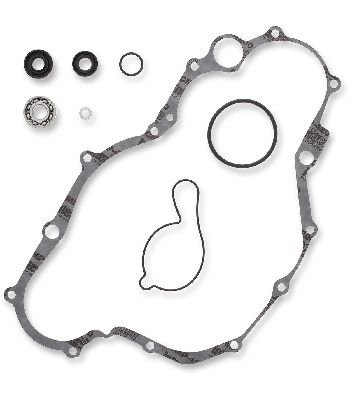 Kit réparation pompe à eauRenferme tous les joints, joints toriques, roulements et joints spy nécessaires pour réparer une pompe à eauLe kit contient les éléments suivants : roulements le cas échéant, joints en caoutchouc, joint de pompe à eau mécanique le cas échéant, joint de carter latéral, joint de pompe à eau, circlips sur l’axe de pompe à eau et joints de vidange en cuivre.