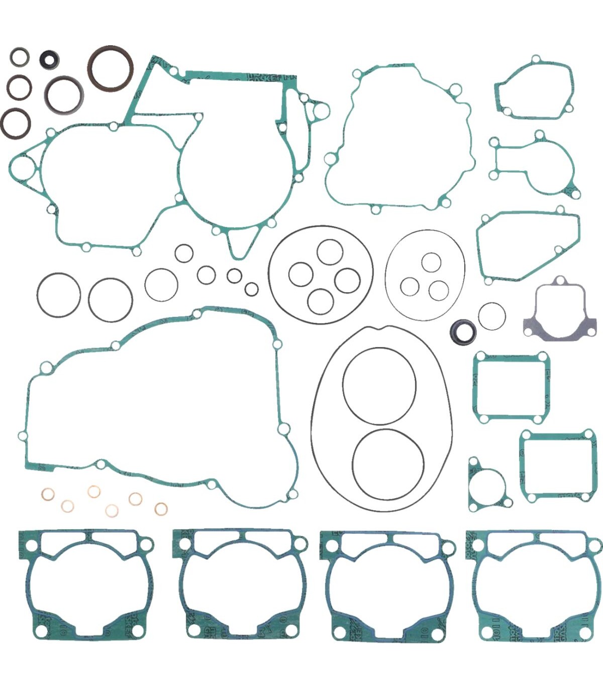Ensemble de joints completJoints de culasse caractérisés par une structure ondulable en acier revêtu de caoutchoucLes joints d’embase en acier doux sont revêtus de caoutchoucLes matériaux de base en métal se caractérisent par une haute compression et une résistance à la tension supérieureLa révolutionnaire couverture transparente garantit une étanchéité parfaite même à des températures extrêmement élevéesCouche de silicone bleue de haute température sur la plupart de joints plats essentielsRenferme l’ensemble des joints, Silentbloc et joints de queue de soupape de qualité supérieure pour le moteur