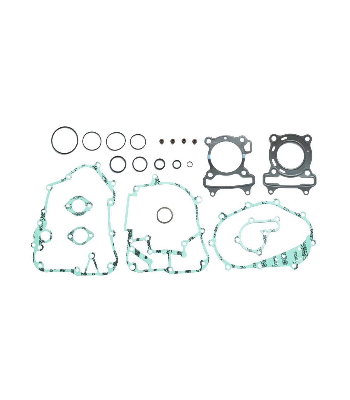 Kits de joints completKit de joints de qualité supérieure fabriqués par Athena S.p.A.Joints de culasse caractérisés par une structure ondulable en acier revêtu de caoutchoucLes joints d’embase en acier doux sont revêtus de caoutchoucLes matériaux de base en métal se caractérisent par une haute compression et une résistance à la tension supérieureLa couverture transparente révolutionnaire garantit une étanchéité parfaite même à des températures extrêmement élevéesCouche de silicone bleue de haute température sur la plupart de joints plats essentielsLes kits de joints complets comprennent tous les joints nécessaires pour reconstruire le joint haut et la partie inférieure du moteur, y compris tous les joints en caoutchouc et les joints toriques, partie supérieure et inférieure.