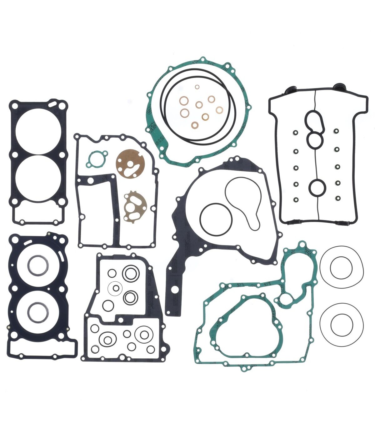 Kits de joints completKit de joints de qualité supérieure fabriqués par Athena S.p.A.Joints de culasse caractérisés par une structure ondulable en acier revêtu de caoutchoucLes joints d’embase en acier doux sont revêtus de caoutchoucLes matériaux de base en métal se caractérisent par une haute compression et une résistance à la tension supérieureLa couverture transparente révolutionnaire garantit une étanchéité parfaite même à des températures extrêmement élevéesCouche de silicone bleue de haute température sur la plupart de joints plats essentielsLes kits de joints complets comprennent tous les joints nécessaires pour reconstruire le joint haut et la partie inférieure du moteur, y compris tous les joints en caoutchouc et les joints toriques, partie supérieure et inférieure.
