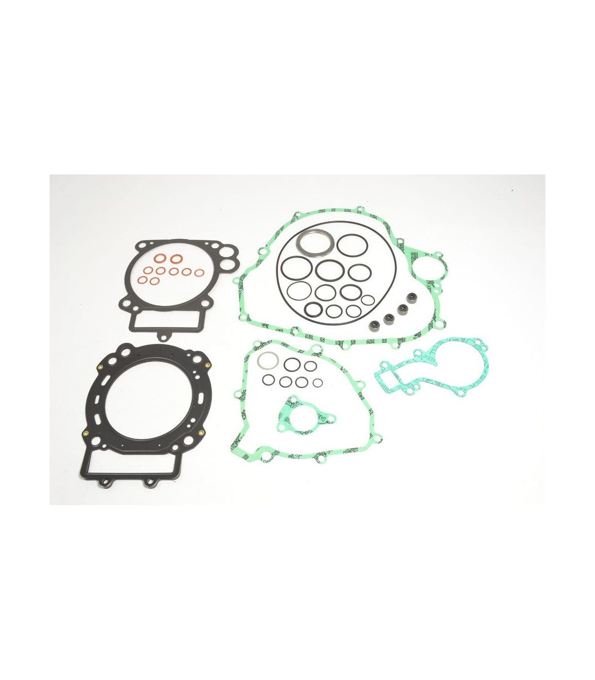 Kits de joints completKit de joints de qualité supérieure fabriqués par Athena S.p.A.Joints de culasse caractérisés par une structure ondulable en acier revêtu de caoutchoucLes joints d’embase en acier doux sont revêtus de caoutchoucLes matériaux de base en métal se caractérisent par une haute compression et une résistance à la tension supérieureLa couverture transparente révolutionnaire garantit une étanchéité parfaite même à des températures extrêmement élevéesCouche de silicone bleue de haute température sur la plupart de joints plats essentielsLes kits de joints complets comprennent tous les joints nécessaires pour reconstruire le joint haut et la partie inférieure du moteur, y compris tous les joints en caoutchouc et les joints toriques, partie supérieure et inférieure.