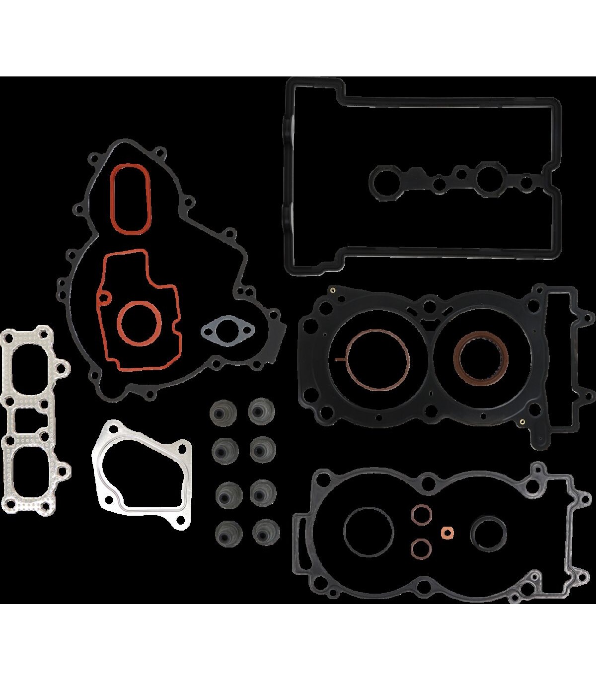 Complete Gasket KitGaskets and gasket sets used by professionals in high-performance machines and as OE replacements worldwideMLS head gaskets promote an even torque load across the gasket sealing surface, providing less bore distortion and better piston ring seal for more power4-stroke head gaskets are made to perform on today’s highest-output 4-stroke naturally aspirated and boosted machines, utilizing a multi-layered steel design with the outer layers being embossed and coated with a Viton rubber coating; these head gaskets are designed to meet the demands of today's high-horsepower, high-cylinder-pressure enginesComplete kit contains every gasket, sealing washer, O-ring and oil seal needed to completely seal one engineMade in the USA