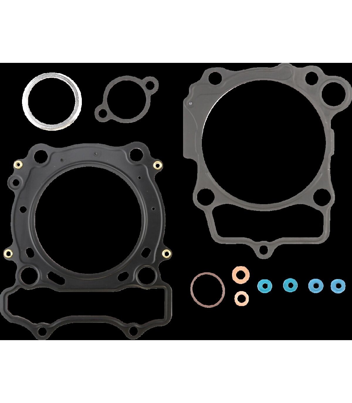 Top End Gasket KitTop end gasket kit includes correct base, head gasket and cylinder O-rings as well as other top end specific O-rings or seals needed for R&R of top endMLS head gaskets promote an even torque load across the gasket sealing surface, providing less bore distortion and better piston ring seal for more power4-stroke head gaskets are made to perform on today’s highest-output 4-stroke naturally aspirated and boosted machines, utilizing a multi-layered steel design with the outer layers being embossed and coated with a Viton rubber coating; these head gaskets are designed to meet the demands of today's high-horsepower, high-cylinder-pressure enginesEST (Extreme Sealing Technology) gasket kit includes embossed stainless steel head, base and rocker gaskets covered with a proprietary rubber materialHead gasket material allows heat to be drawn away from the combustion ring and dissipated evenly across the gasket surface to eliminate hot spots and gasket failureMade in the USA