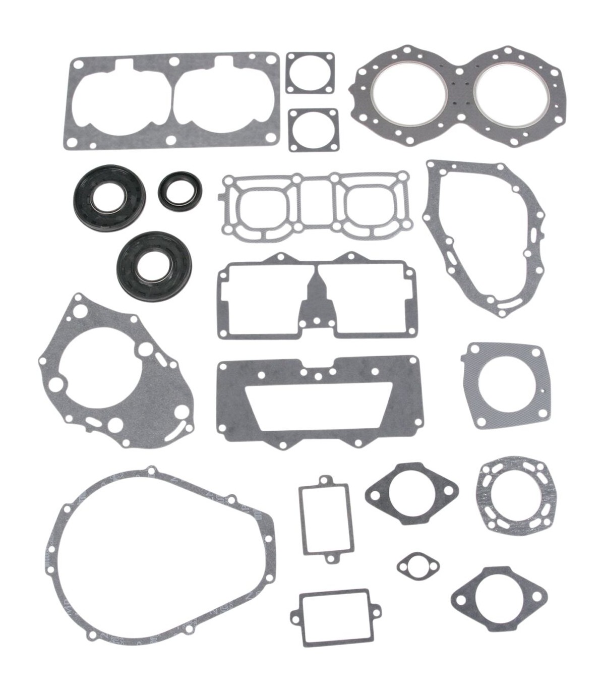 Complete Gasket SetSet contains all gaskets necessary for professional engine rebuilding, including high-performance oil sealsIncludes all head, base, intake, exhaust gaskets and O-rings or oil seals, plus crankshaft end seals and power valve gasketsMade in the USA