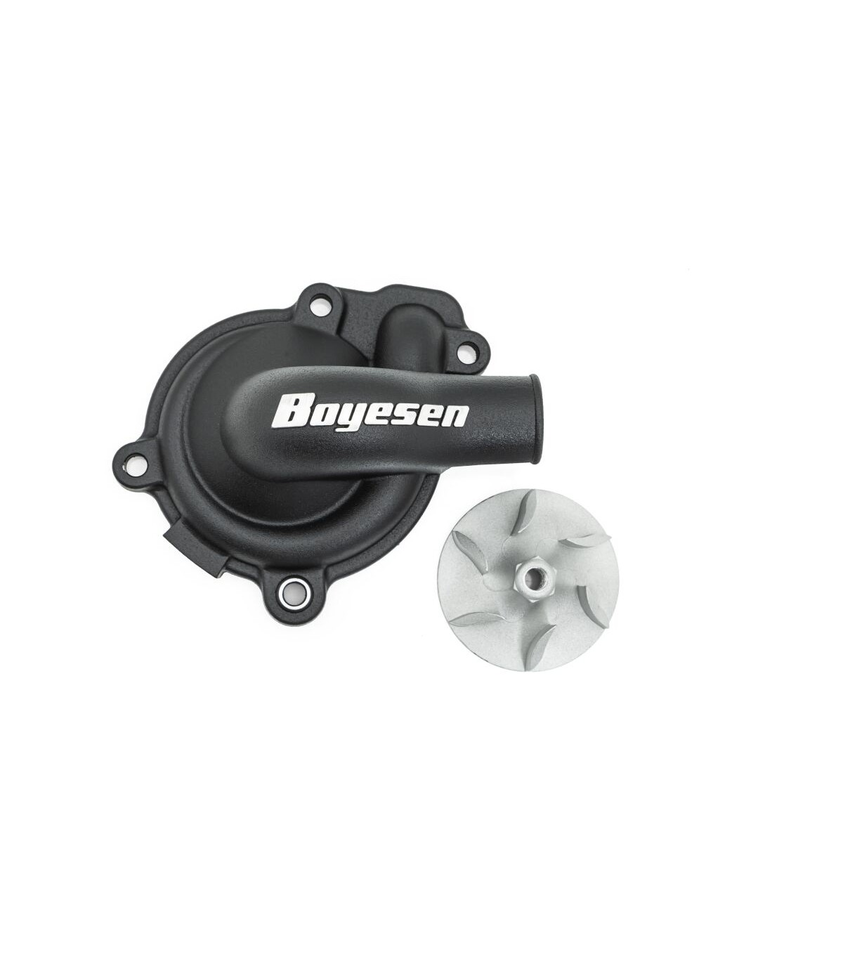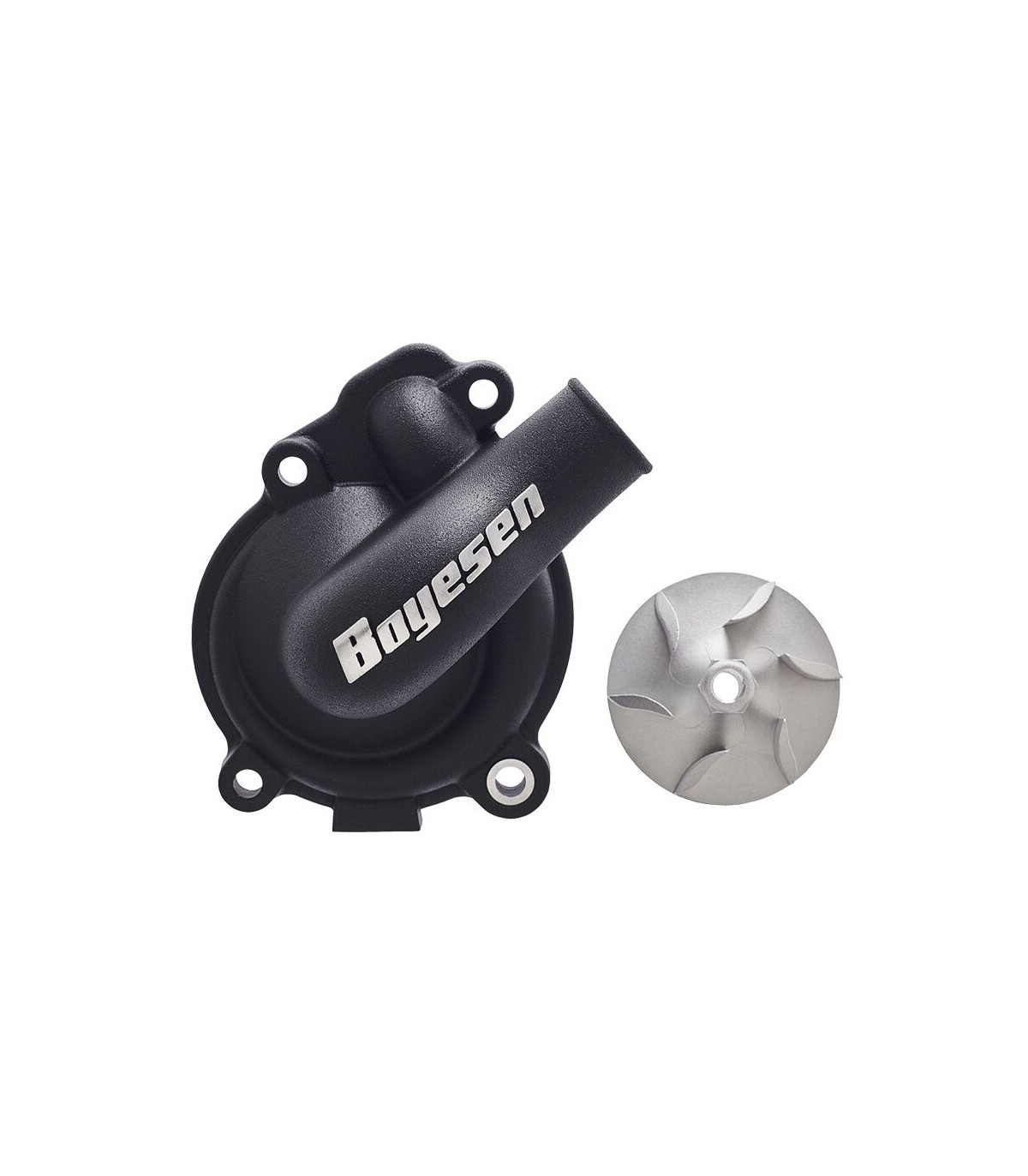 Supercooler Water Pump Cover & Impeller KitPatented Nautilus style cast aluminum impellerCover and Impeller Kit Increase coolant flow at all rpm rangesReduces cavitation and hydraulic frictionSeamless Hydrodynamic designHigh capacity inletsAvailable in Silver, black, magnesium, orange, red and blue-colored powder-coat finish