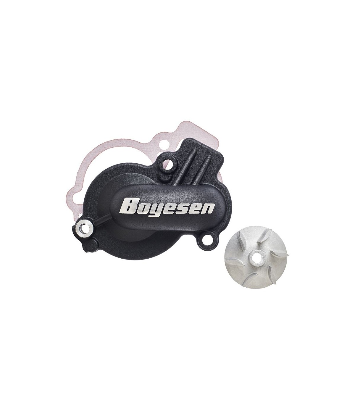 Supercooler Water Pump Cover & Impeller KitPatented Nautilus style cast aluminum impellerCover and Impeller Kit Increase coolant flow at all rpm rangesReduces cavitation and hydraulic frictionSeamless Hydrodynamic designHigh capacity inletsAvailable in Silver, black, magnesium, orange, red and blue-colored powder-coat finish