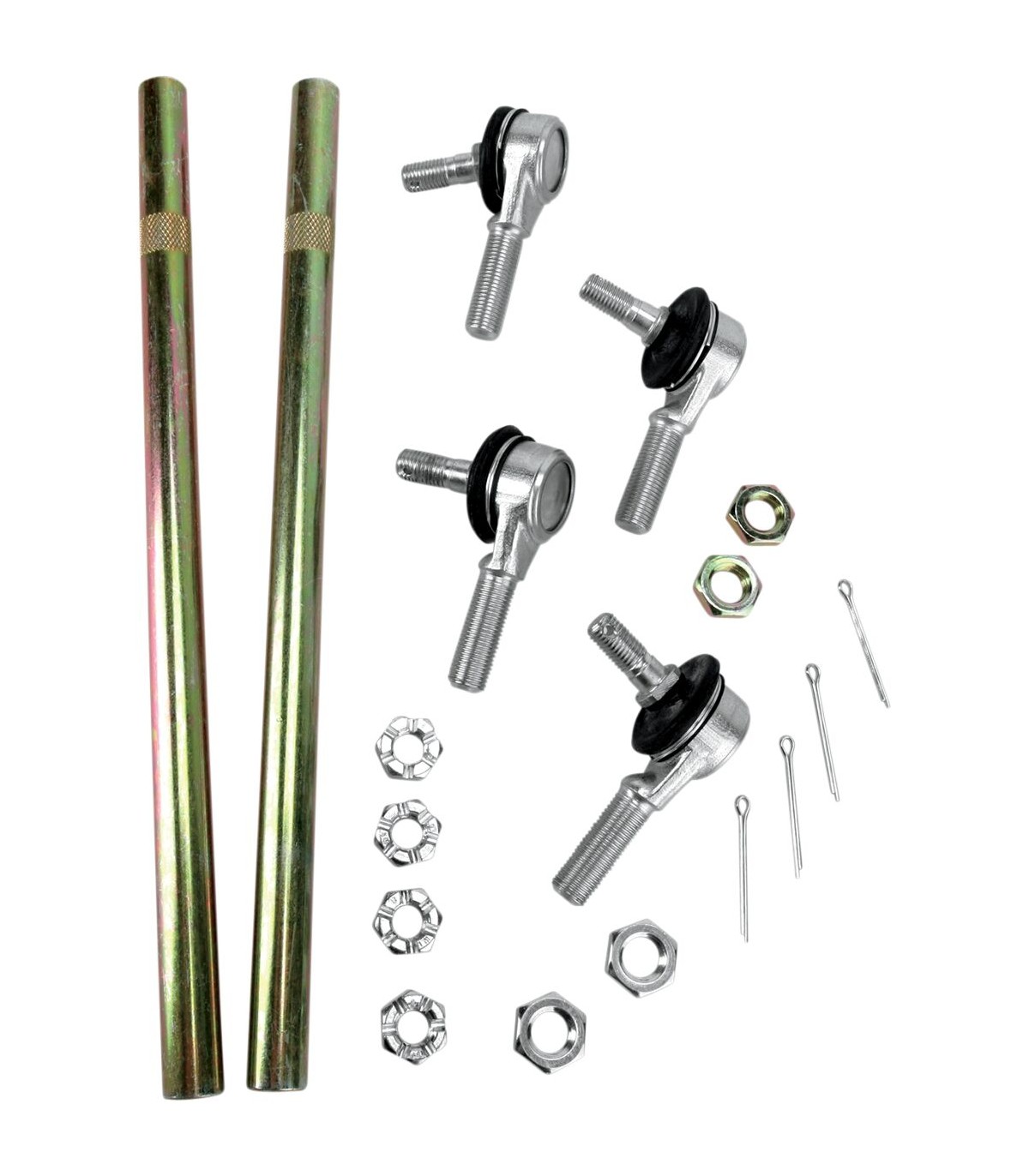 Kit d'amélioration de biellette de directionPour remplacer les rotules de direction de 10 mm sujettes aux dysfonctionnements par l’assemblage de rotule renforcé de 12 mm de MooseChaque kit comprend deux biellettes de direction, quatre rotules de direction, des goupilles fendues et des contre-écrous