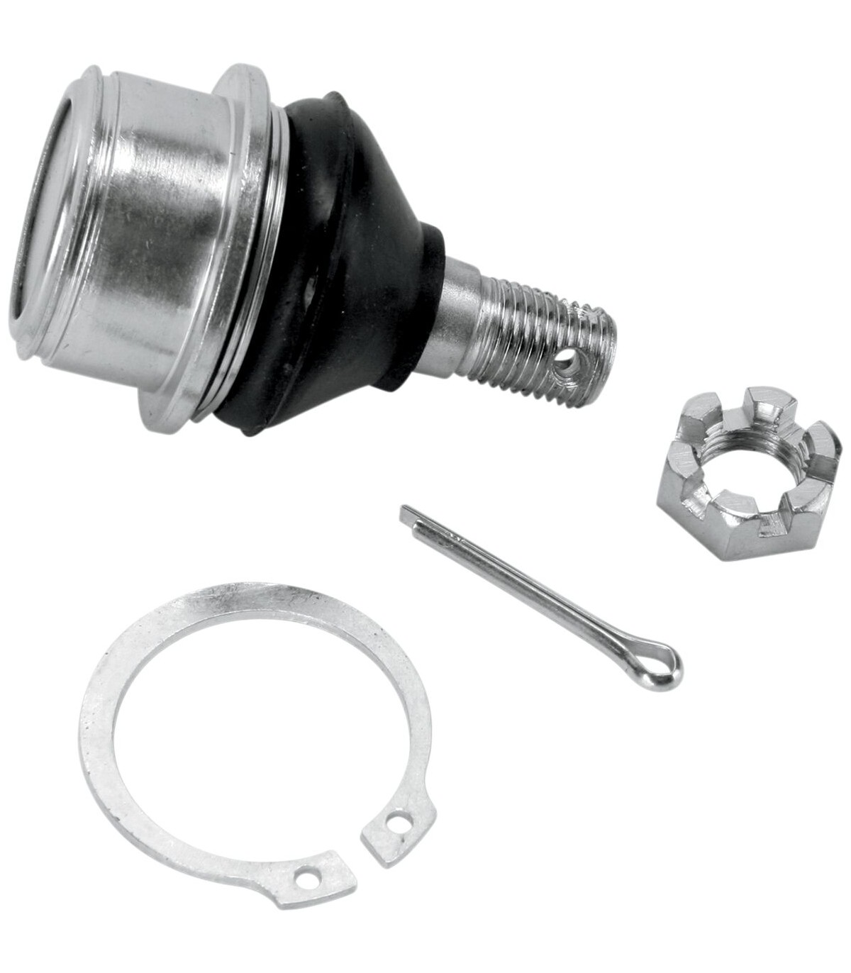 Ball JointBall joint kits are sold per A-arm and come with snap ring and cotter pinBall joints feature heavy-duty steel cases with POM-M90 bearing material for long lifeHelps end premature Honda ball joint failure by upgrading from the OEM aluminum joint to our heavy-duty steel jointInexpensive replacement for those Kawasaki and Suzuki applications that otherwise require purchase of complete A-arm/steering knuckle