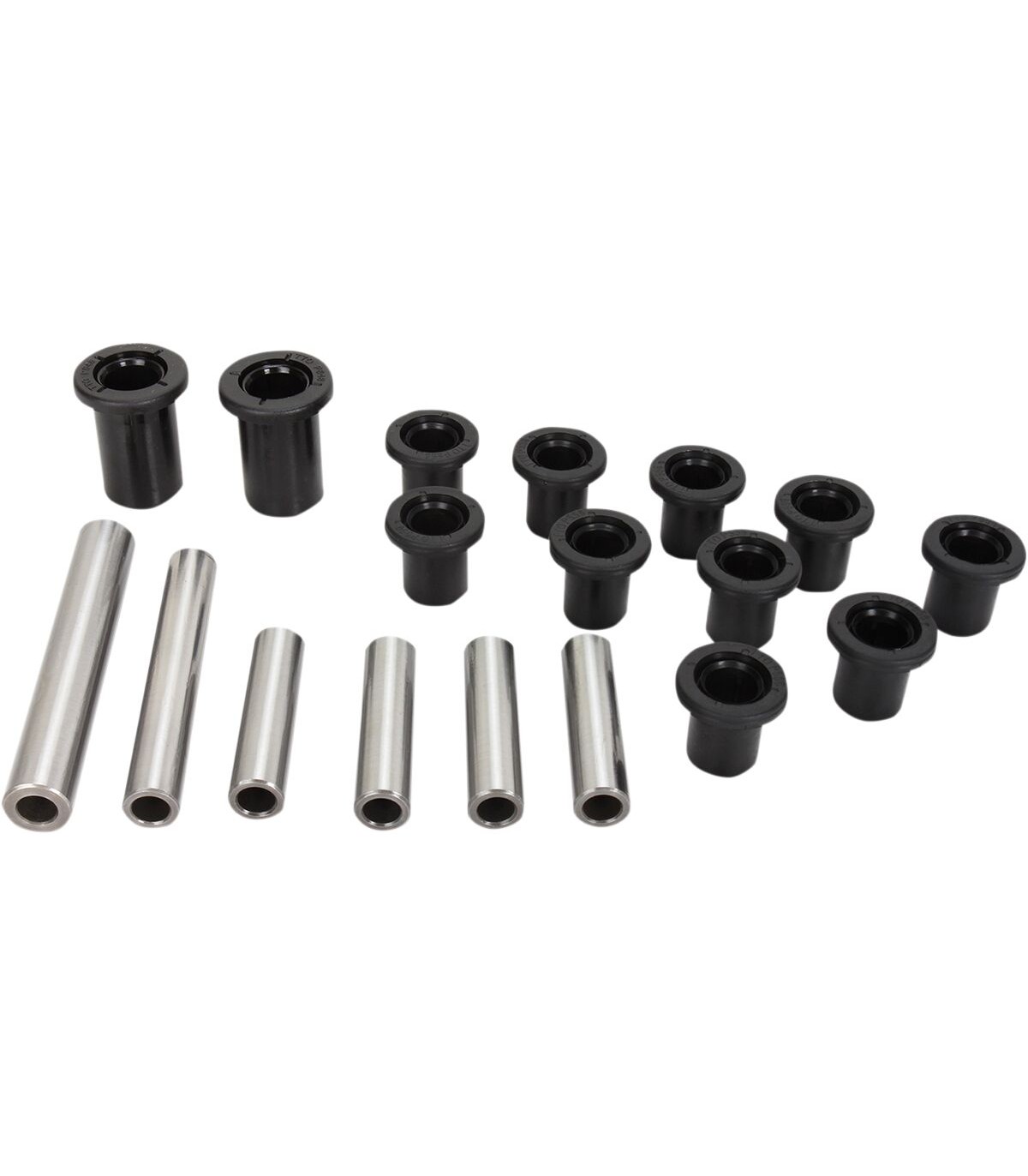 Kit d’amortisseur arrière indépendantKit rentable qui contient l’ensemble des roulements, des bagues, des joints, des entretoises et des autres composants nécessaires pour réparer les triangles de suspension de l’arrière (inférieur et supérieur), ainsi que l’articulationDeux kits nécessaires par véhicule